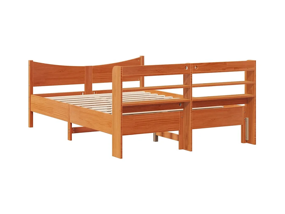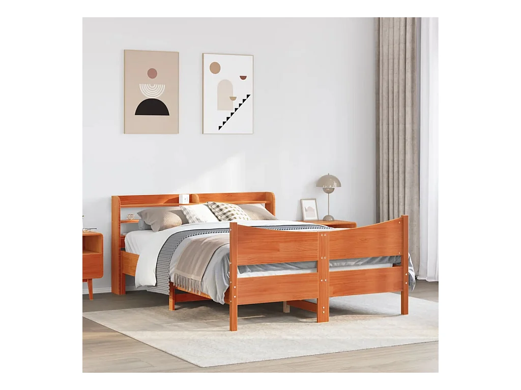 Cadre de lit et tête de lit cire marron 135x190 cm bois de pin