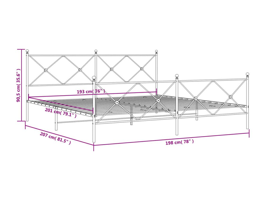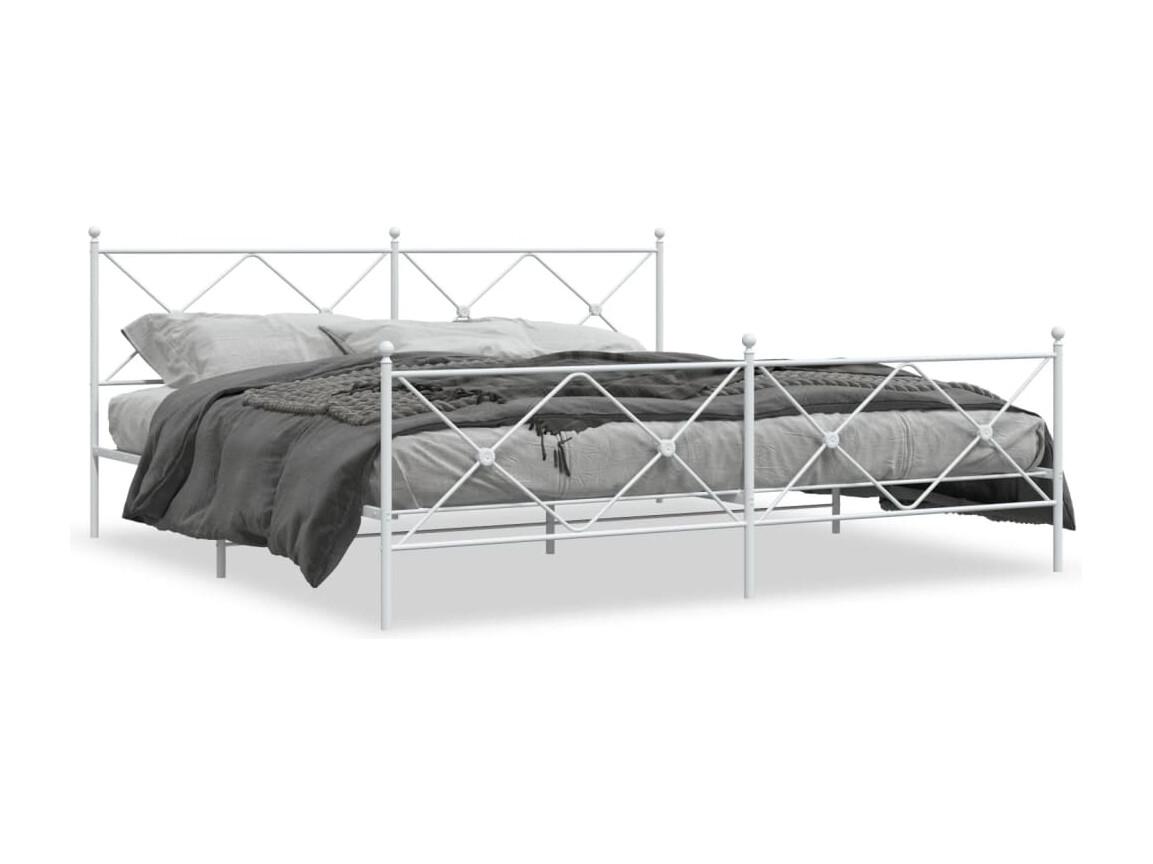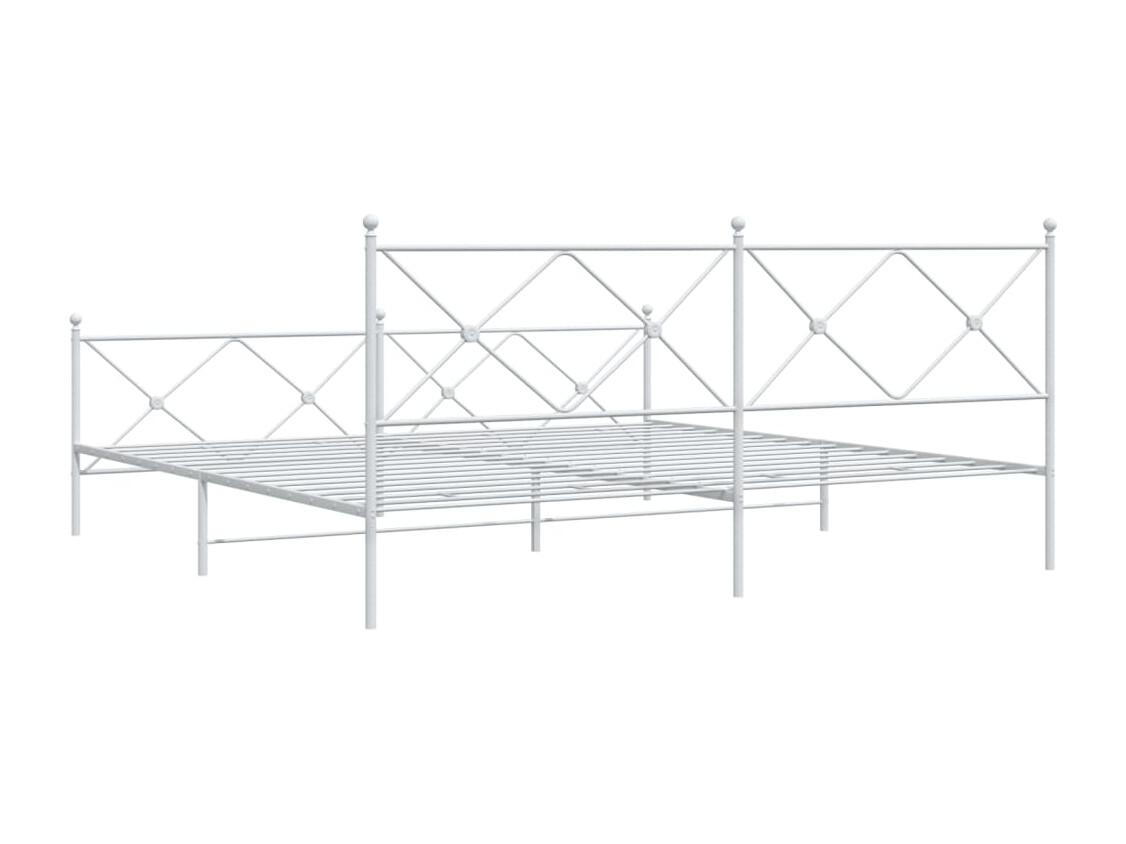 Cadre de lit métal sans matelas et pied de lit blanc 193x203 cm