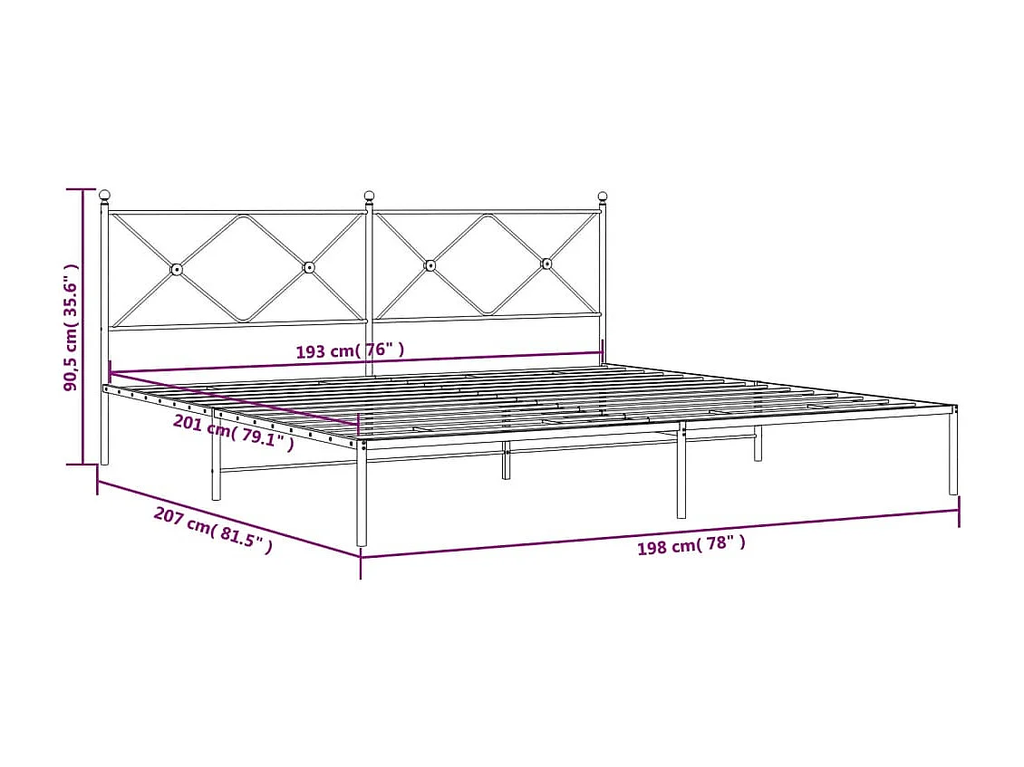 Cadre de lit métal sans matelas et tête de lit blanc 193x203 cm