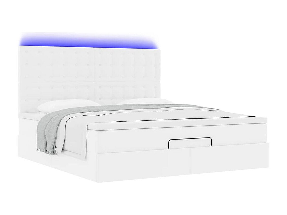 Cadre de lit ottoman avec matelas blanc 180x200 cm similicuir