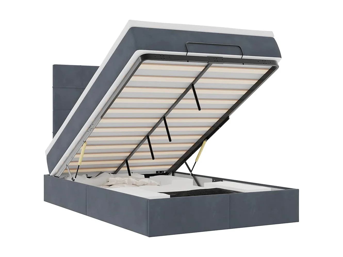 Cadre de lit ottoman avec matelas gris foncé 120x190 cm velours