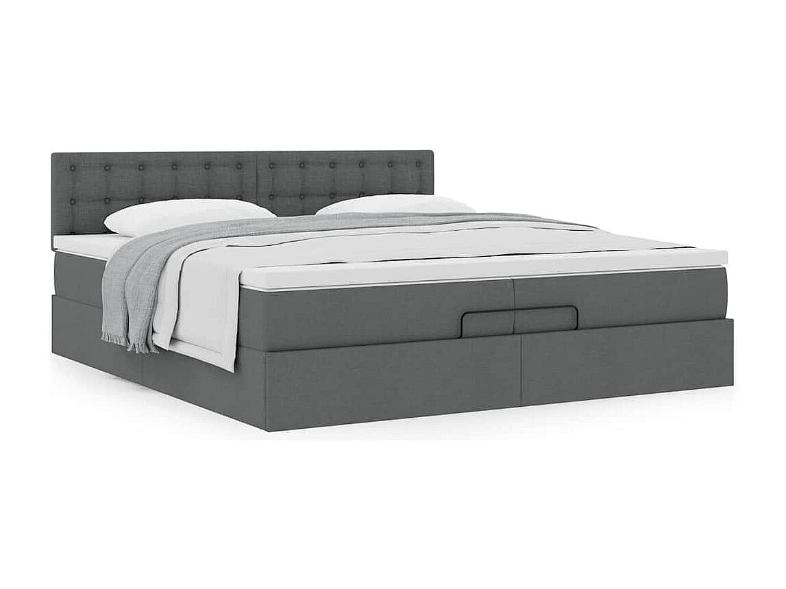 Cadre de lit ottoman avec matelas gris foncé 200x200cm tissu