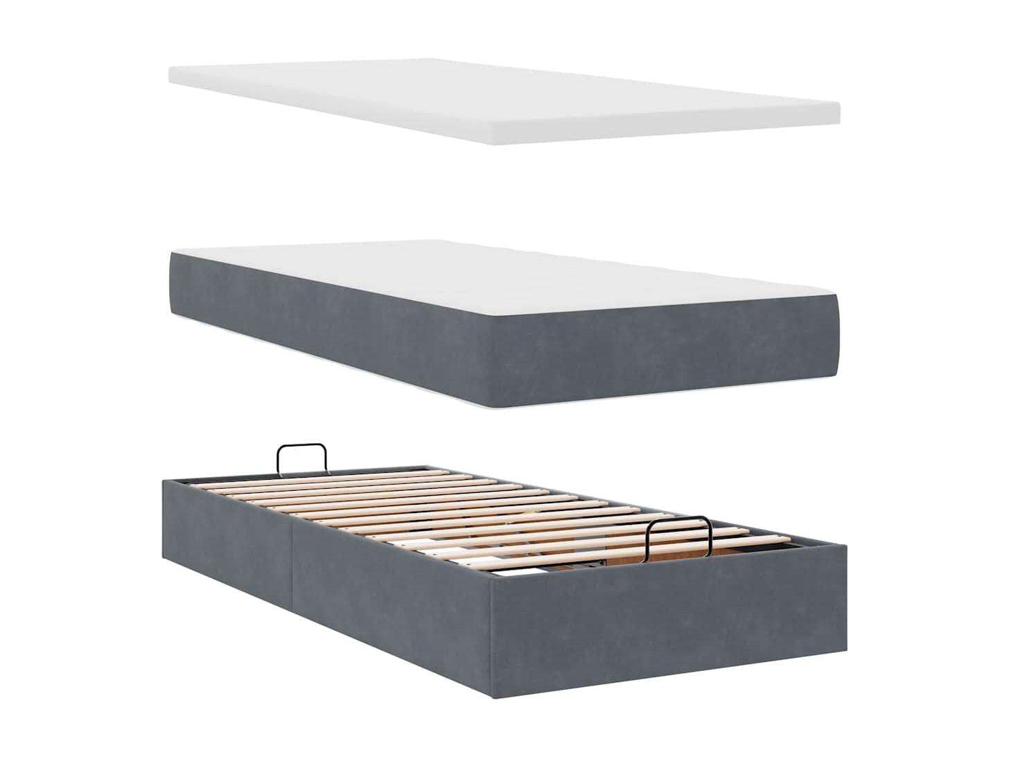 Cadre de lit ottoman avec matelas gris foncé 200x200 cm velours