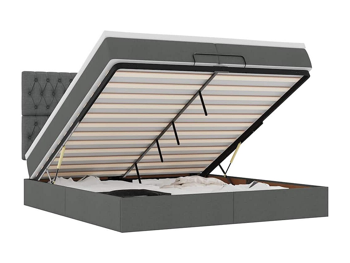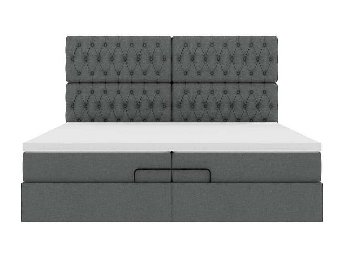 Cadre de lit ottoman avec matelas gris foncé 200x200cm tissu