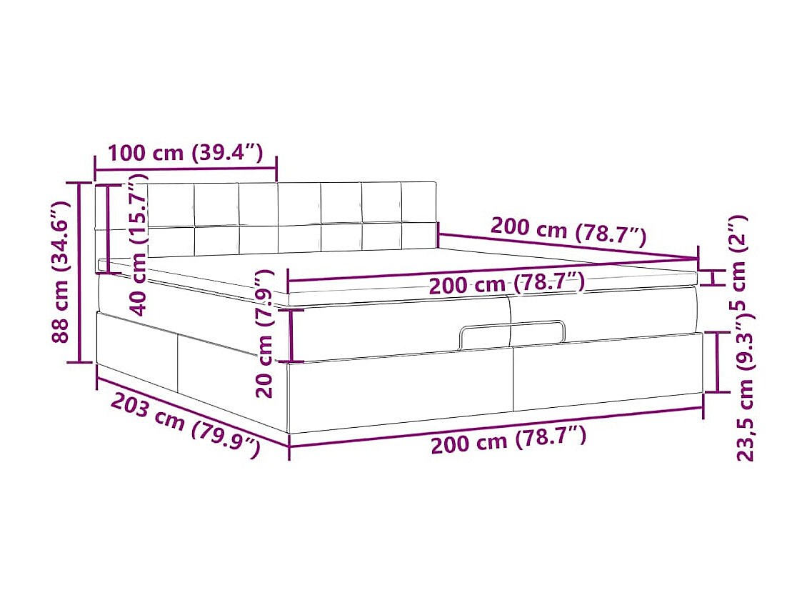 Cadre de lit ottoman avec matelas gris foncé 200x200cm tissu