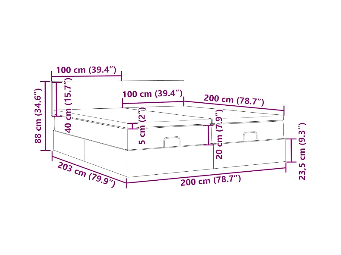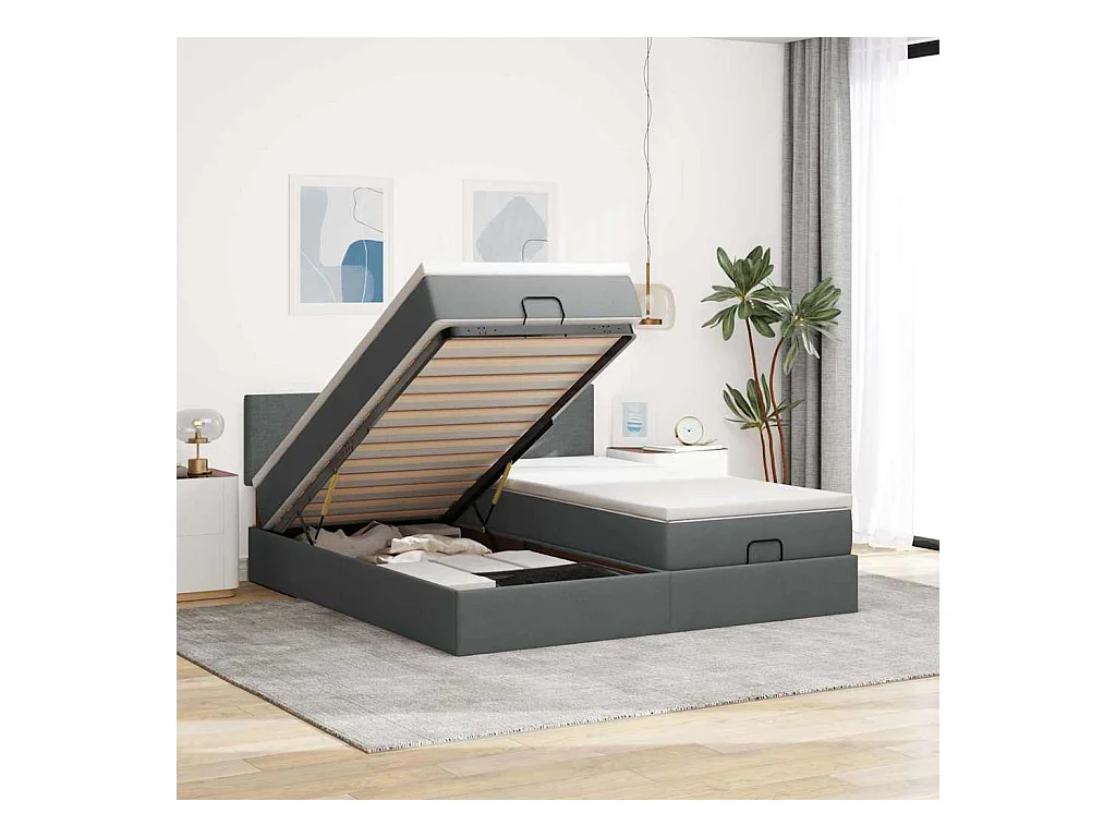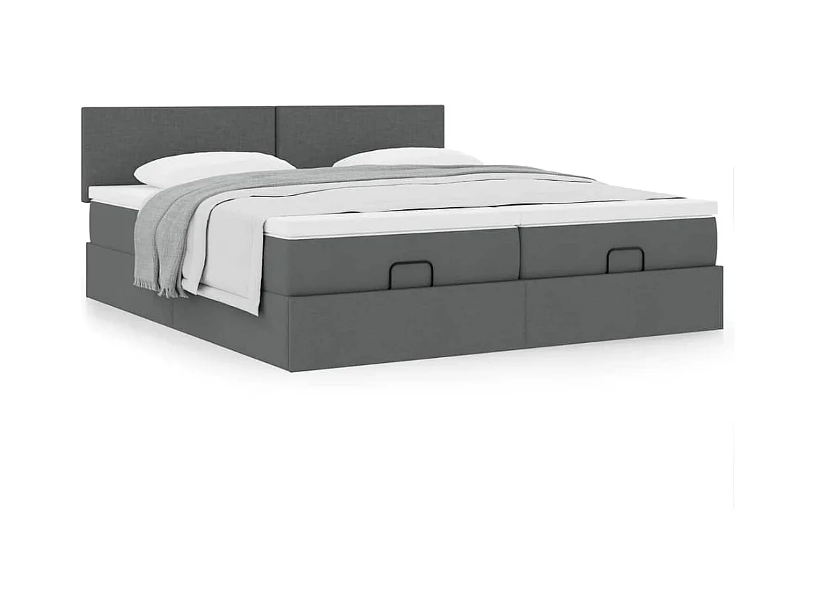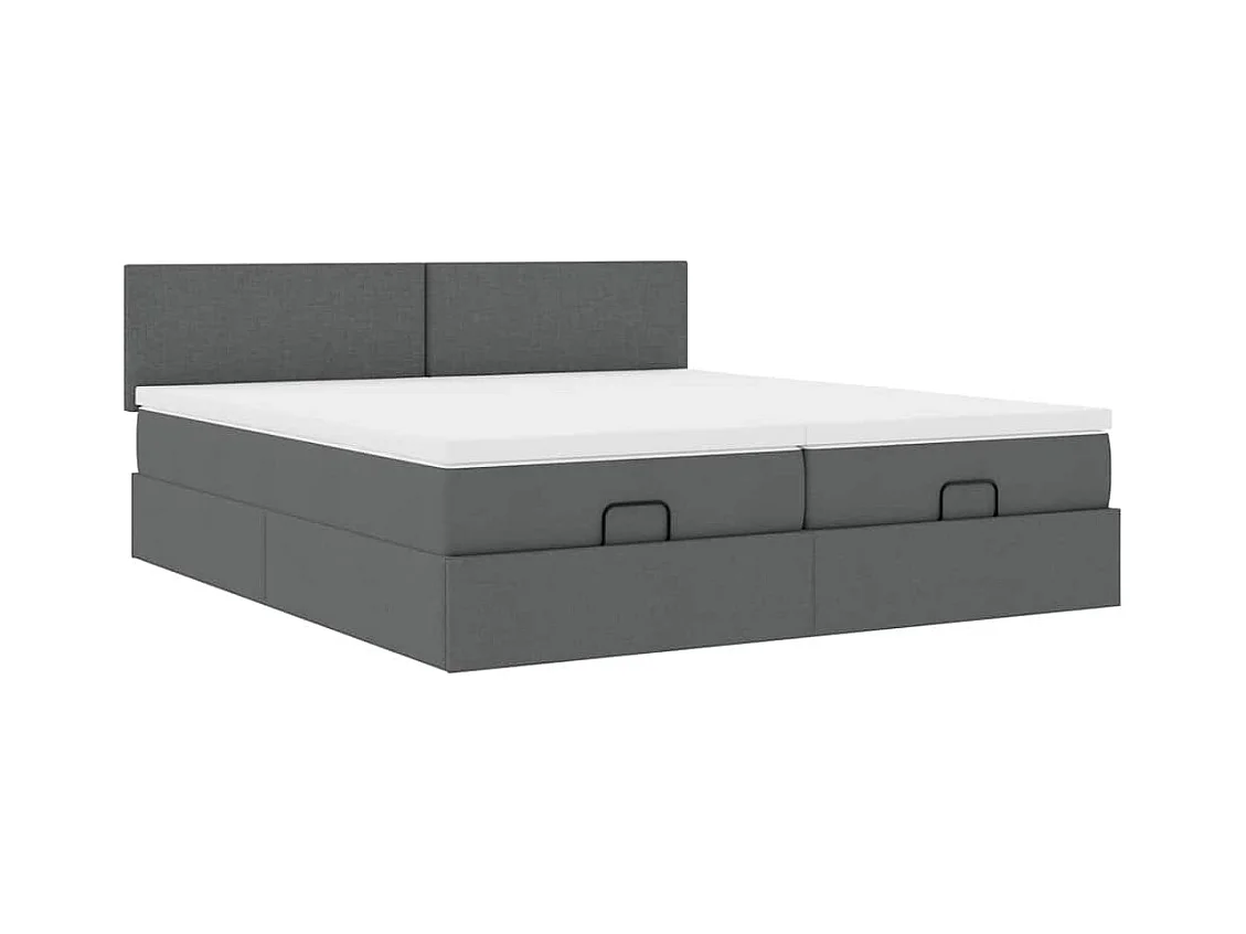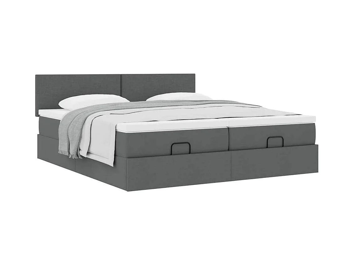 Cadre de lit ottoman avec matelas gris foncé 200x200cm tissu