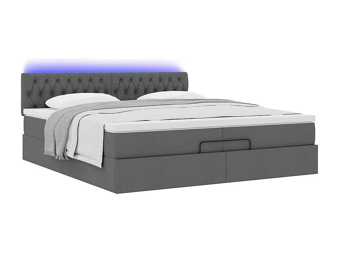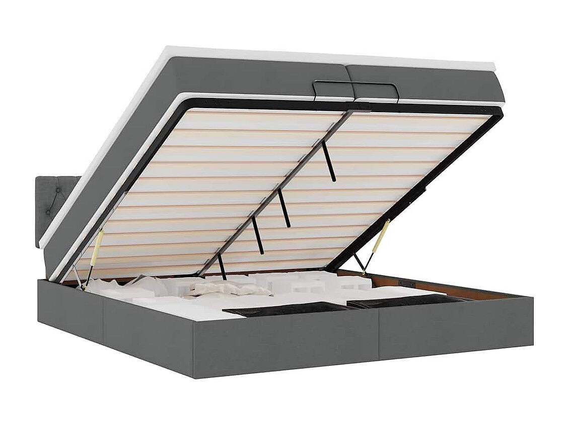 Cadre de lit ottoman avec matelas gris foncé 200x200cm tissu