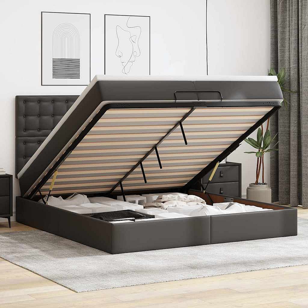 Cadre de lit ottoman avec matelas noir 200x200 cm similicuir