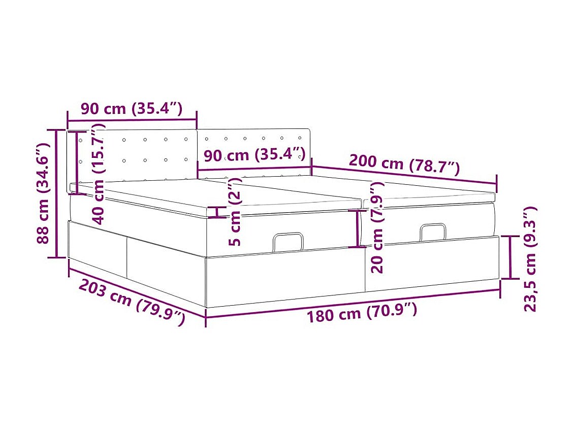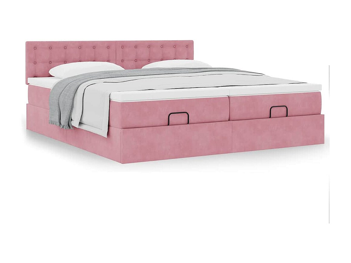Cadre de lit ottoman avec matelas rose 180x200 cm velours
