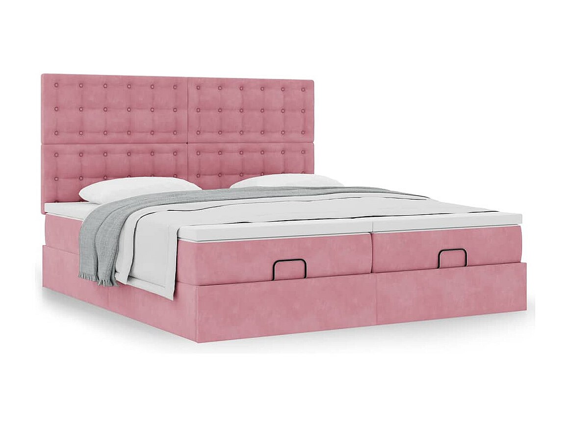 Cadre de lit ottoman avec matelas rose 180x200 cm velours