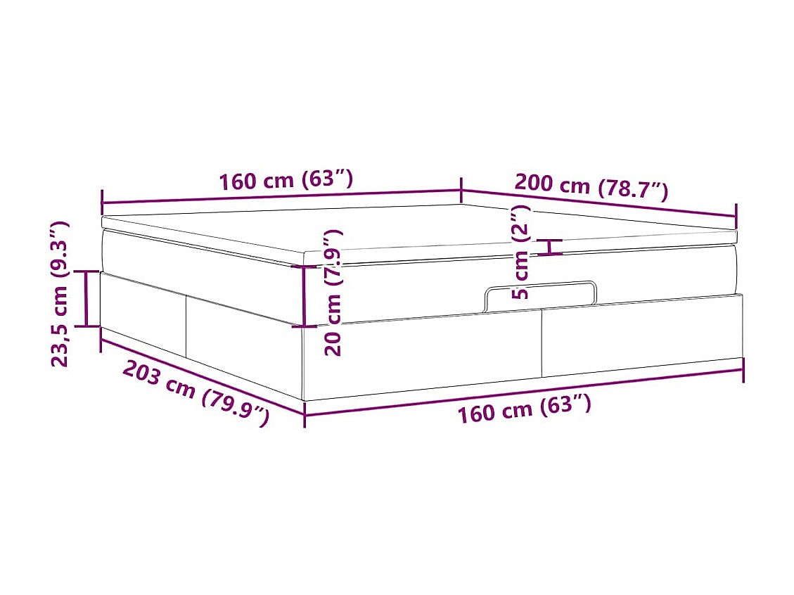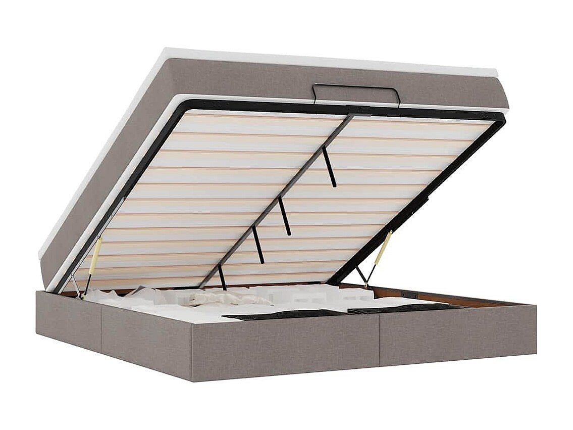 Cadre de lit ottoman avec matelas taupe 160x200 cm tissu