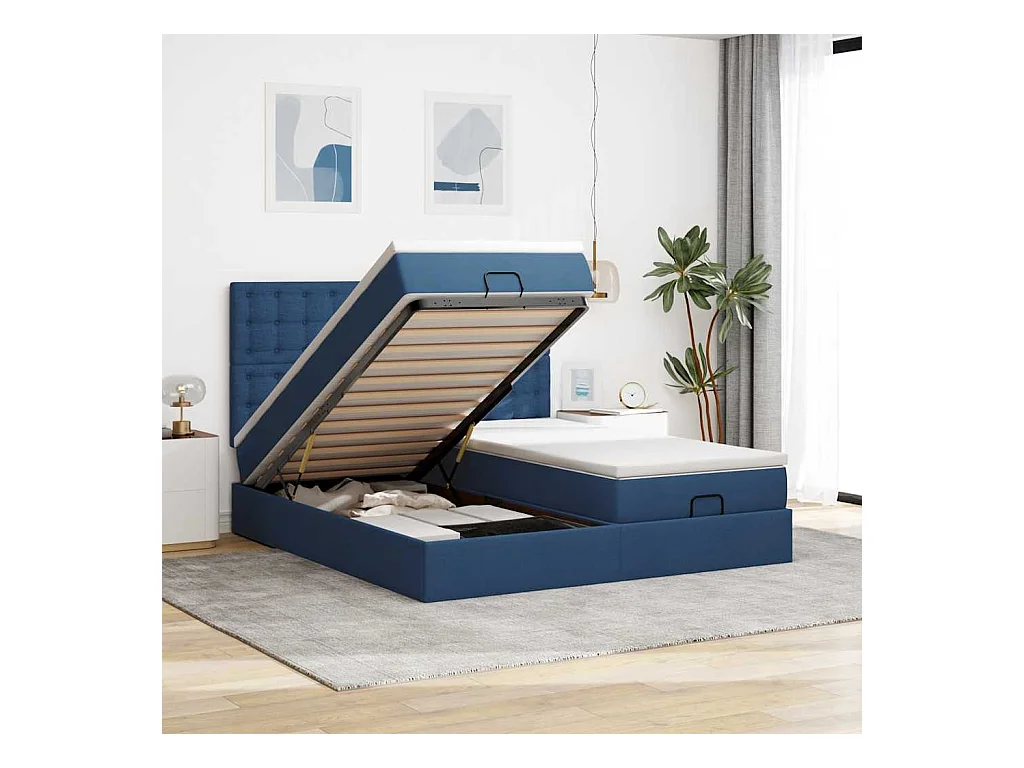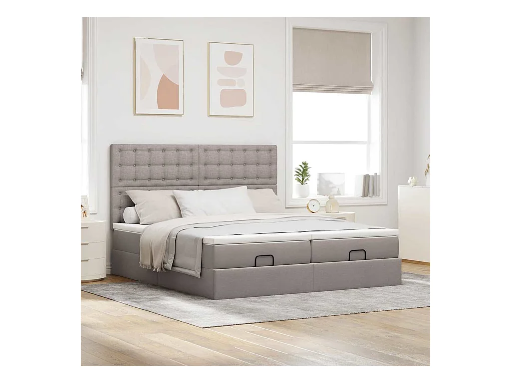 Cadre de lit ottoman avec matelas taupe 200x200cm tissu