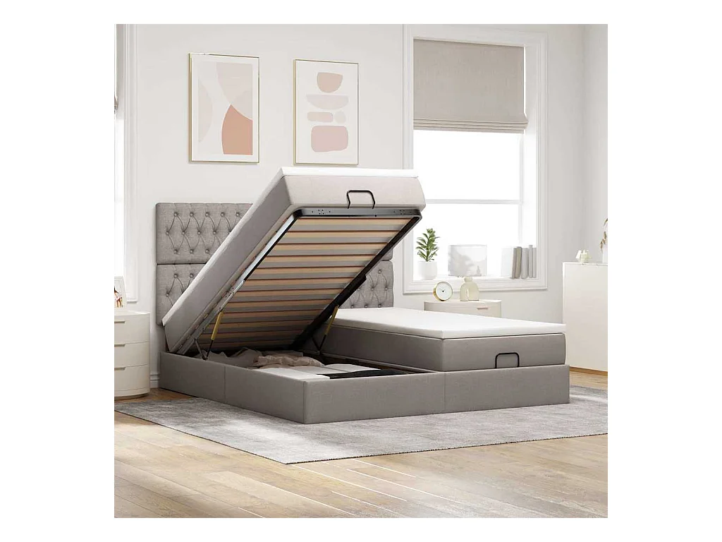 Cadre de lit ottoman avec matelas taupe 200x200cm tissu