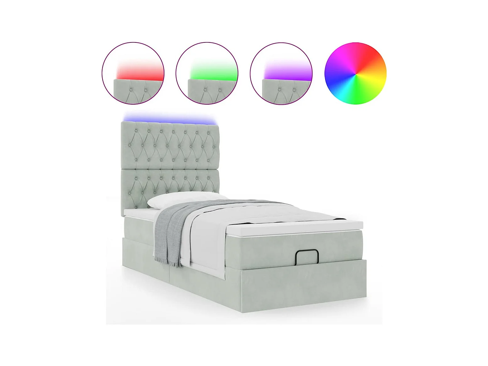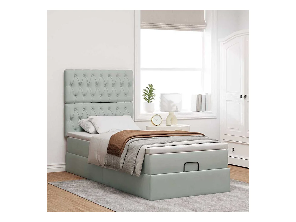 Cadre de lit ottoman et matelas gris clair 100x200 cm velours