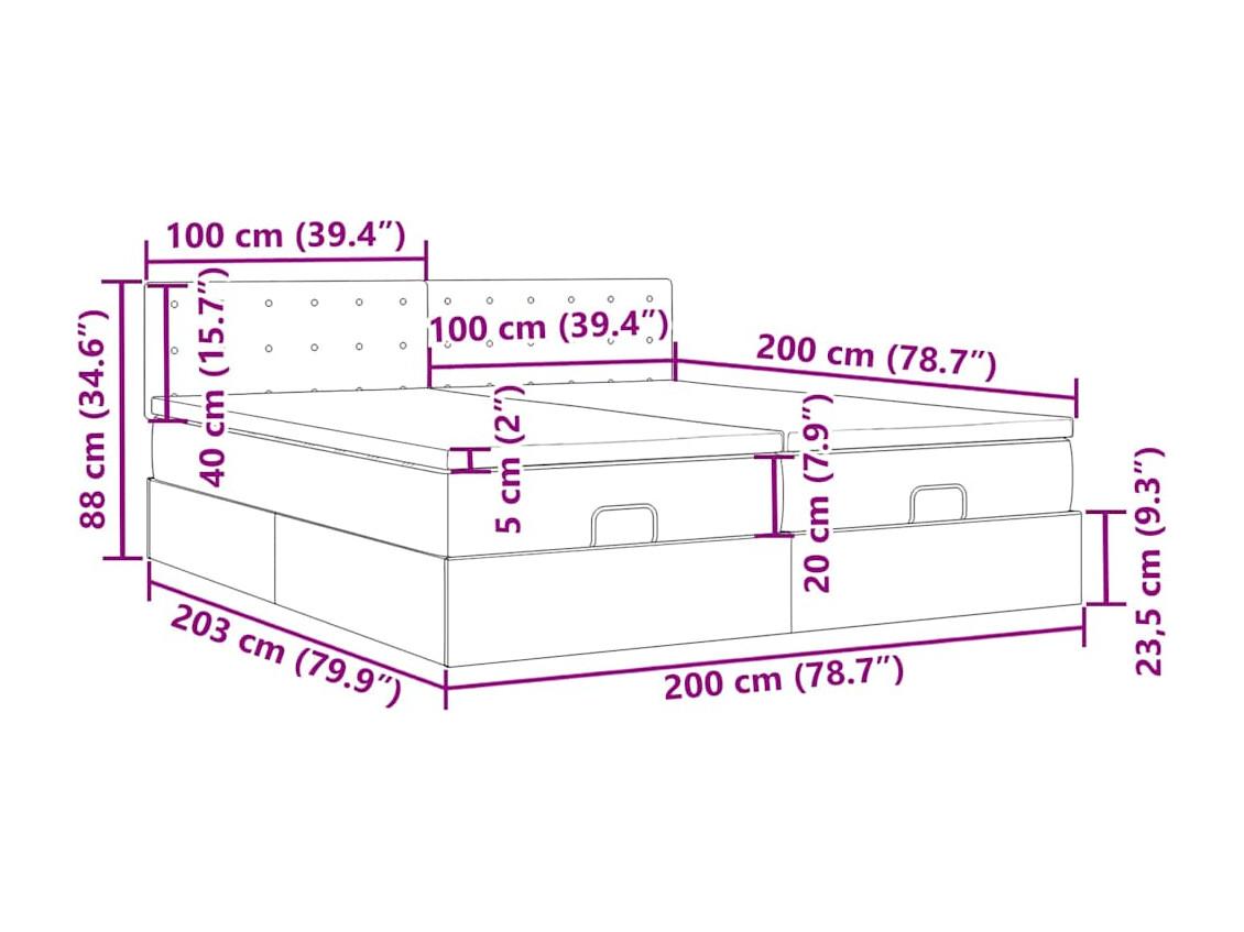 Cadre de lit ottoman avec matelas gris foncé 200x200cm tissu
