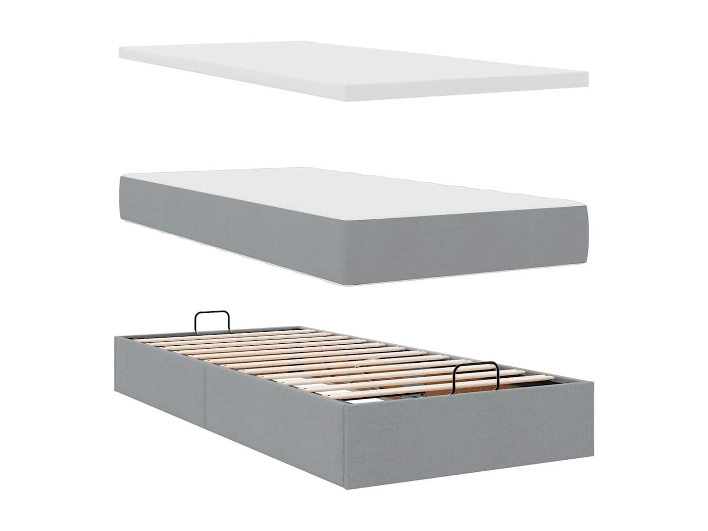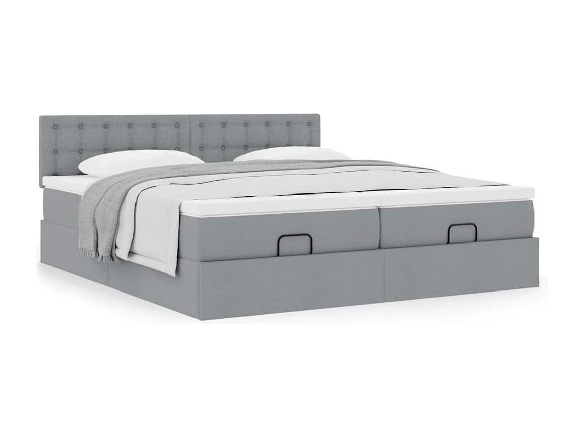 Cadre de lit ottoman et matelas gris clair 200x200cm tissu