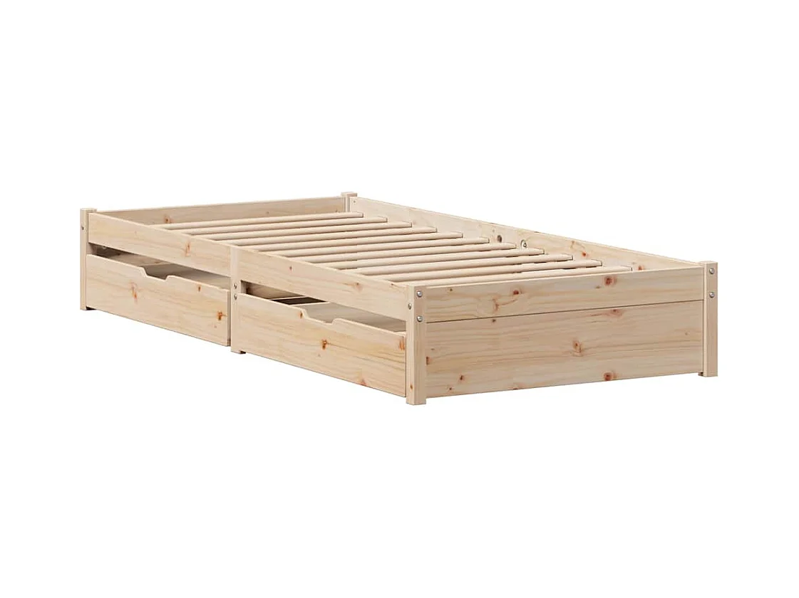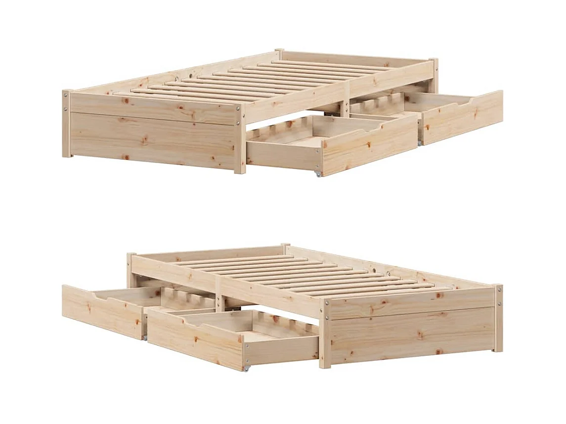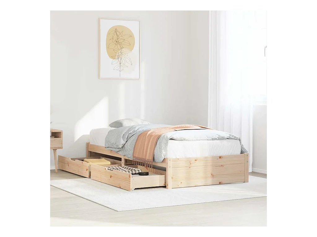 Lit avec tiroirs et matelas 90x200 cm bois massif de pin