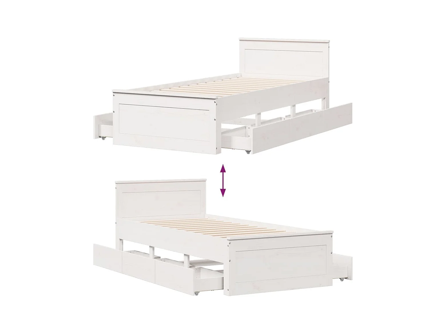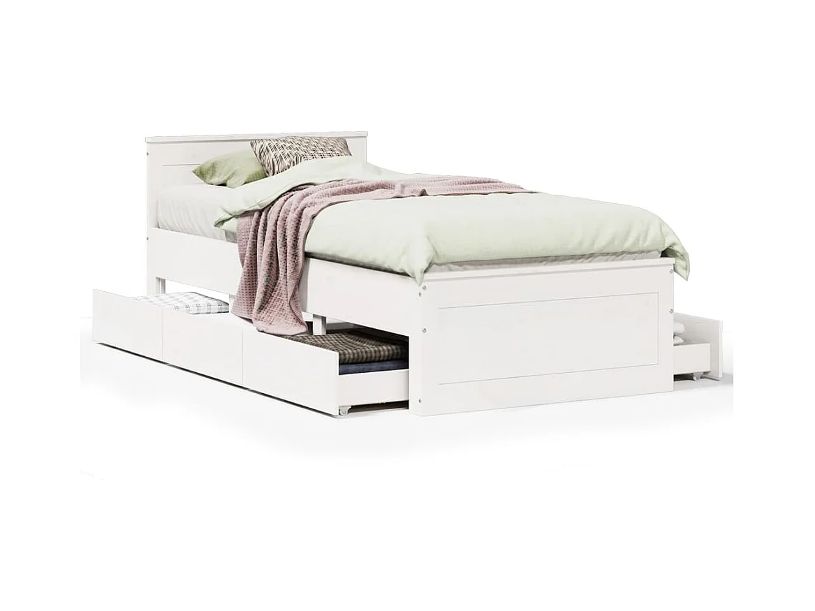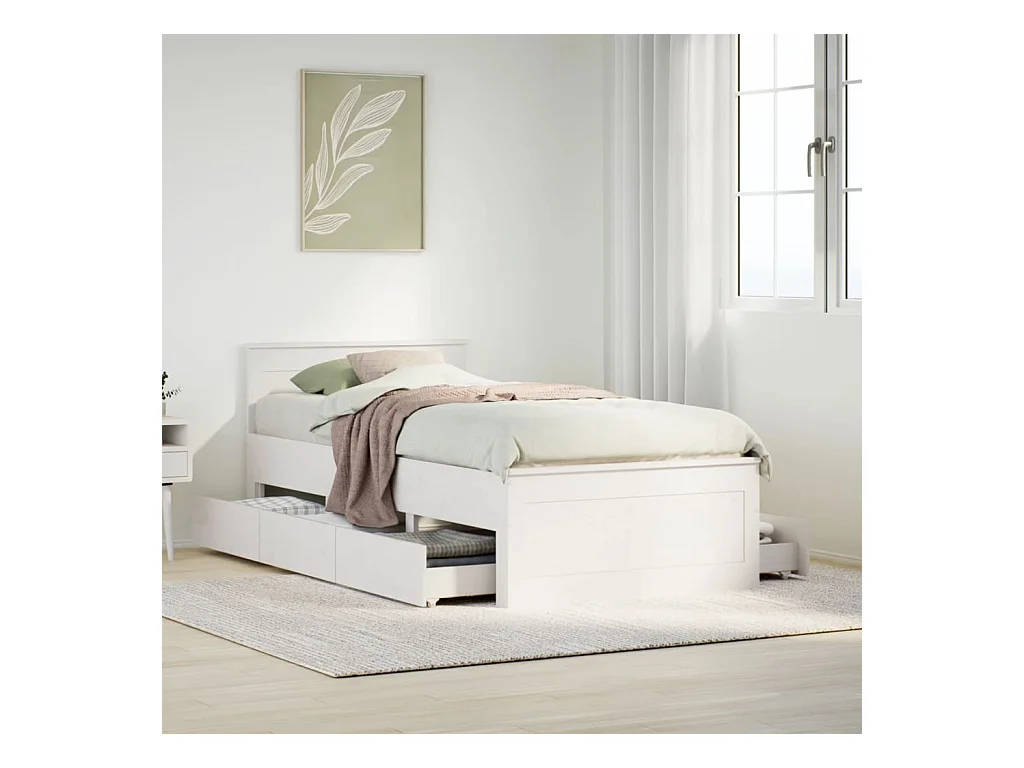 Cadre de lit avec tiroirs sans matelas blanc 90x200 cm