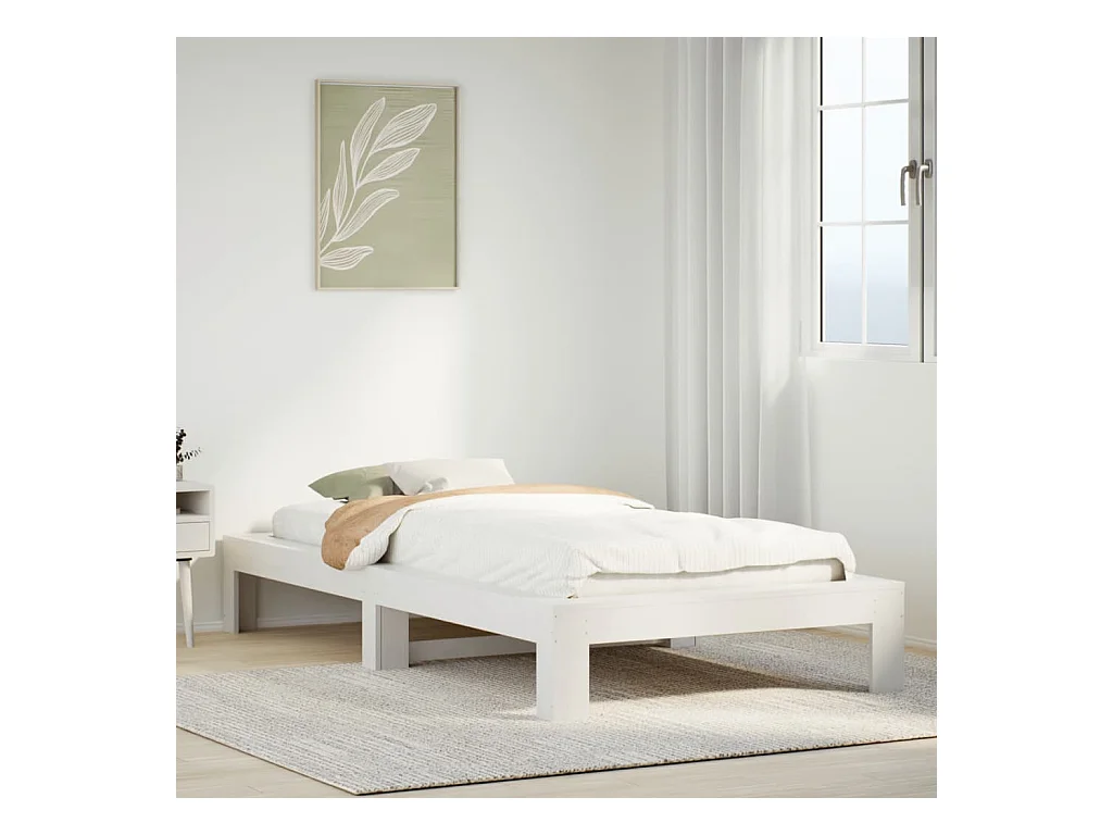 Cadre de lit sans matelas blanc 100x200 cm bois de pin massif