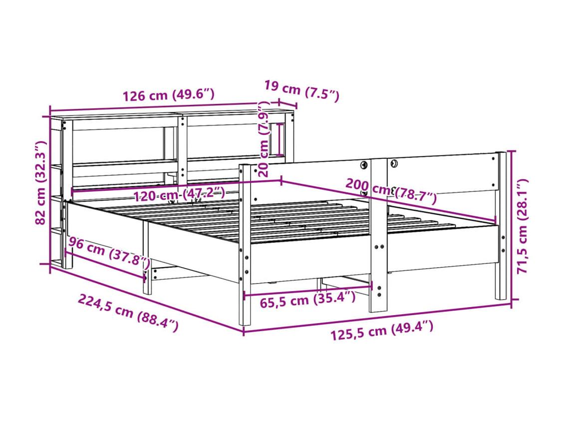 Lit bibliothèque sans matelas blanc 120x200 cm bois pin massif