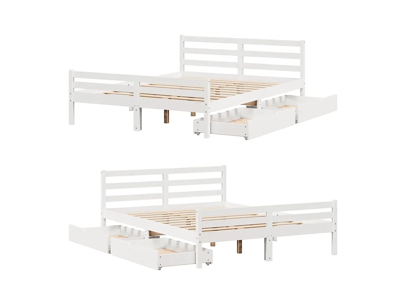 Cadre de lit avec tiroirs blanc 135x190 cm bois de pin massif