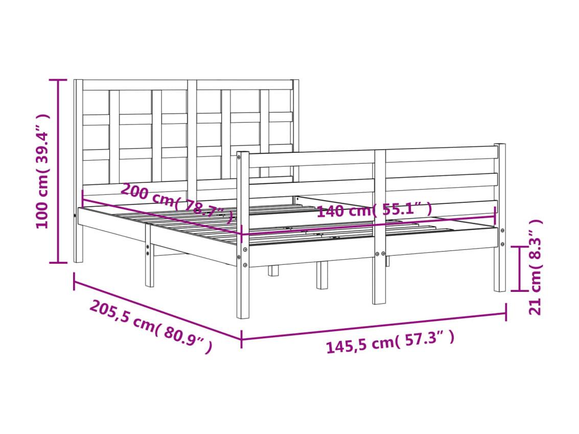 Cadre de lit sans matelas blanc 140x200 cm bois massif