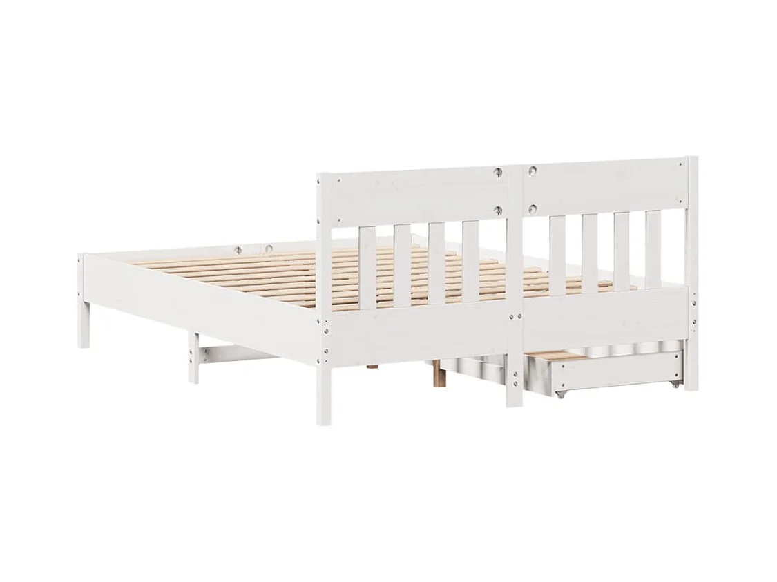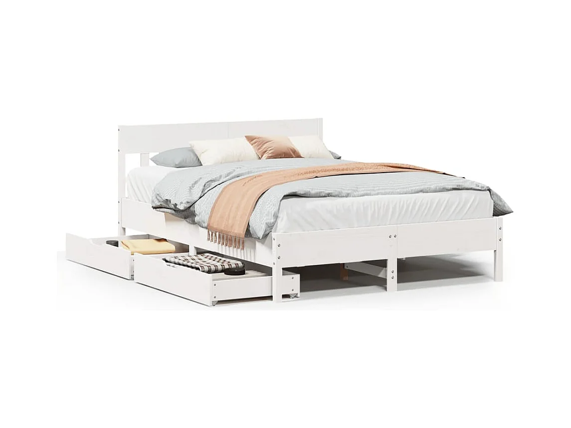 Cadre de lit avec tiroirs blanc 150x200 cm bois de pin massif