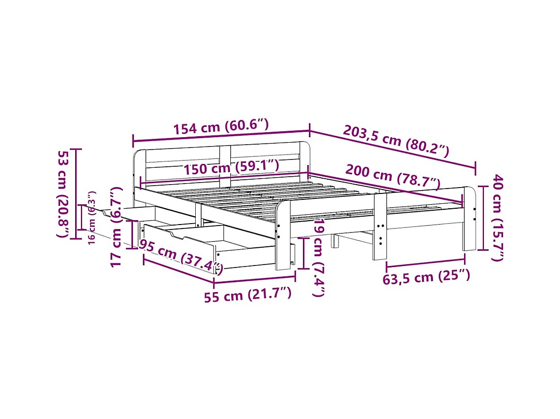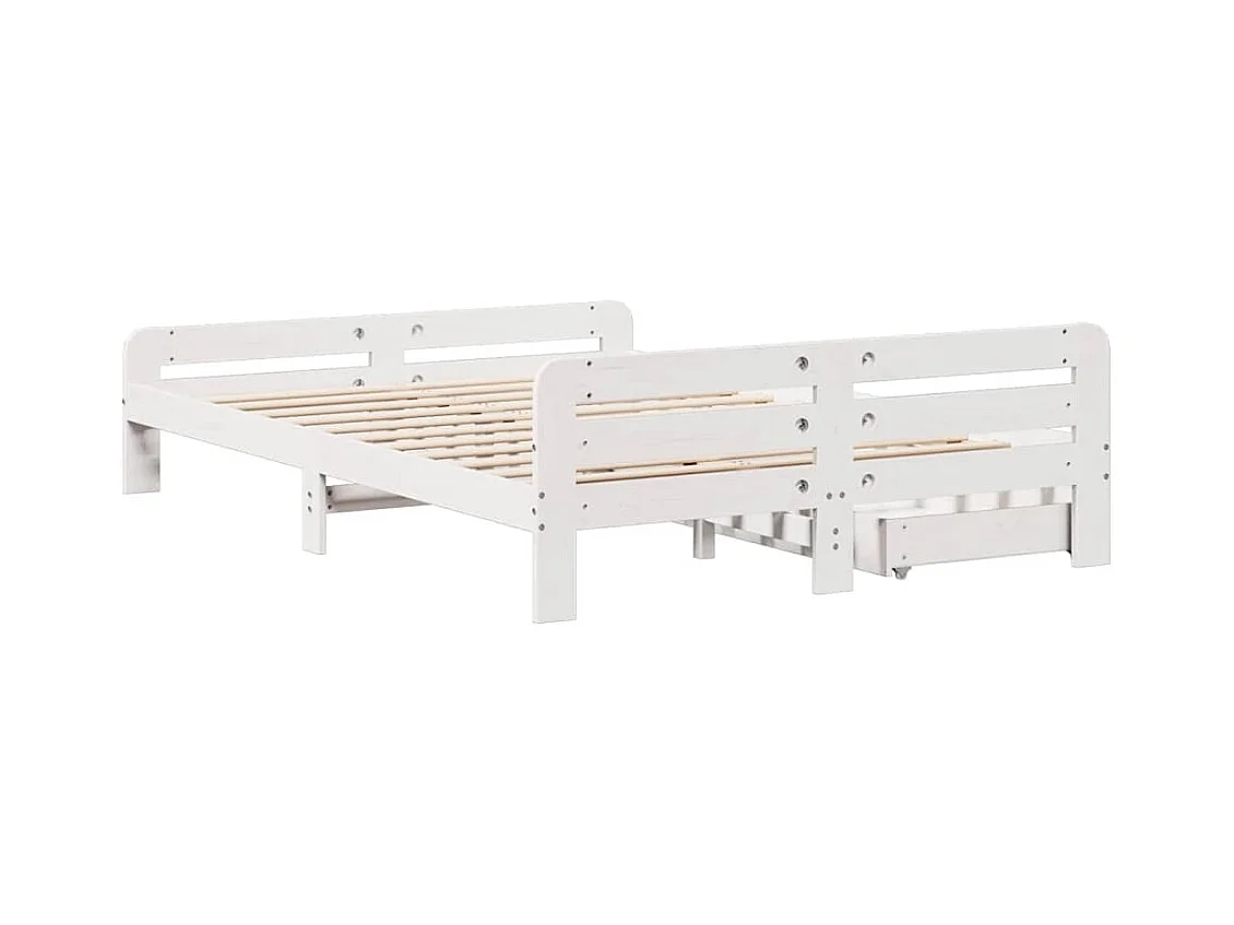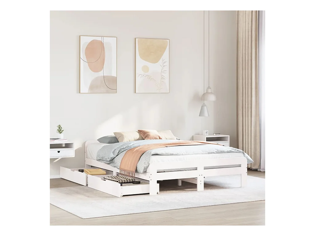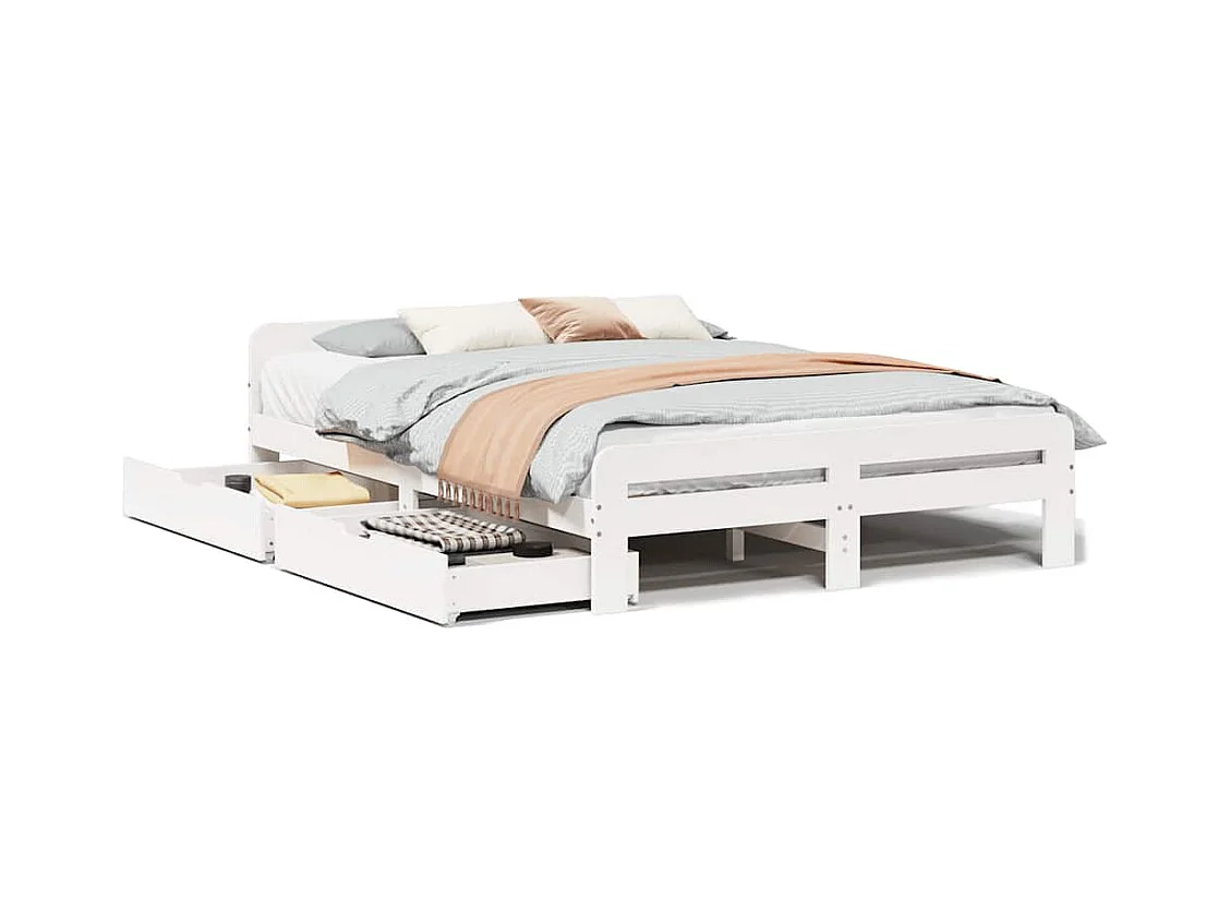 Cadre de lit sans matelas avec tiroirs blanc 150x200 cm pin