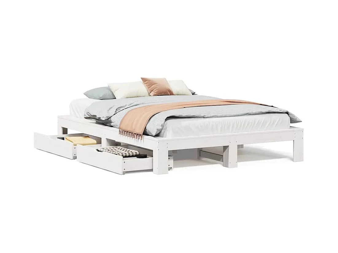 Cadre de lit avec tiroirs sans matelas blanc 150x200 cm
