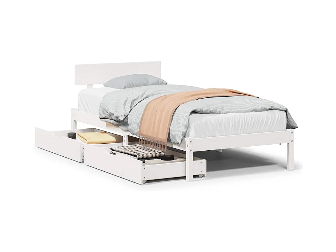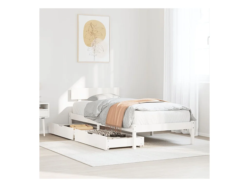Cadre de lit sans matelas blanc 75x190 cm bois de pin massif