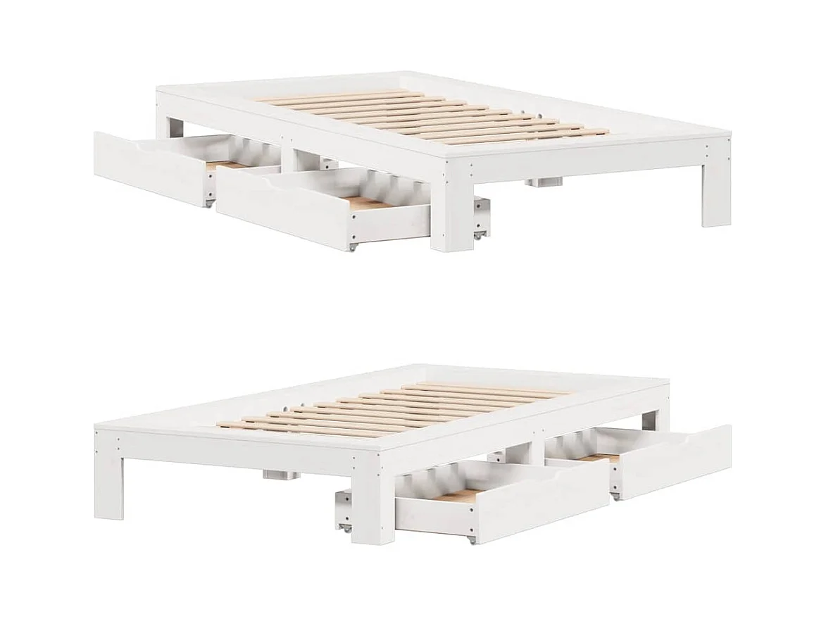 Cadre de lit sans matelas avec tiroirs 75x190 cm bois de pin