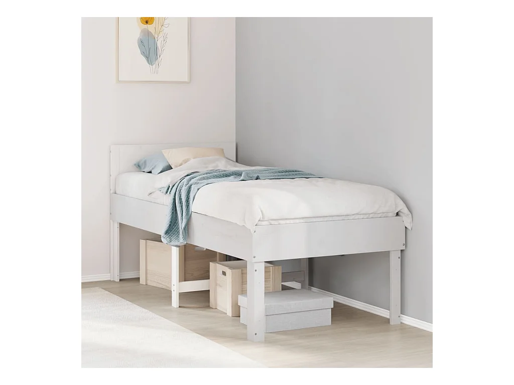 Cadre de lit sans matelas blanc 75x190 cm bois de pin massif