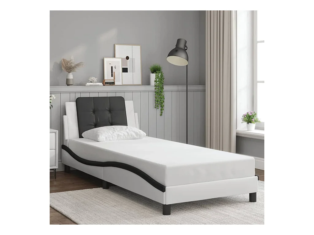 Cadre de lit sans matelas blanc et noir 100x200 cm similicuir