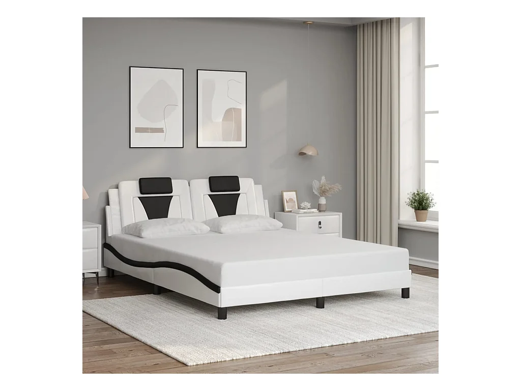 Cadre de lit sans matelas blanc et noir 160x200 cm similicuir