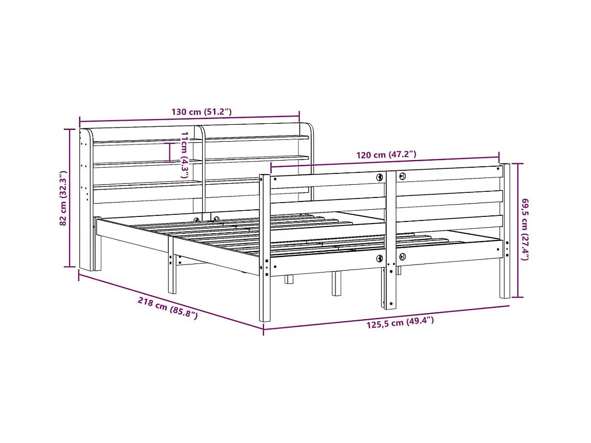 Cadre de lit sans matelas cire marron 120x200cm bois pin massif