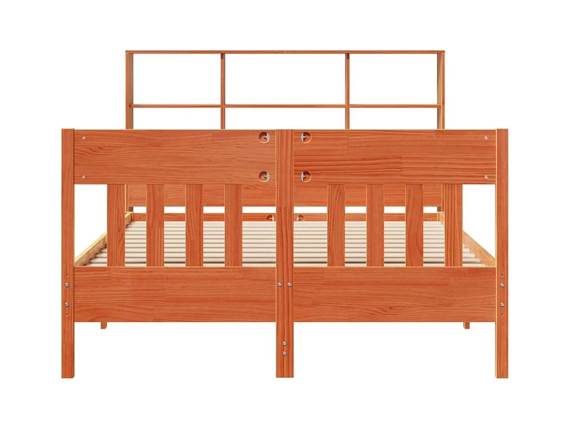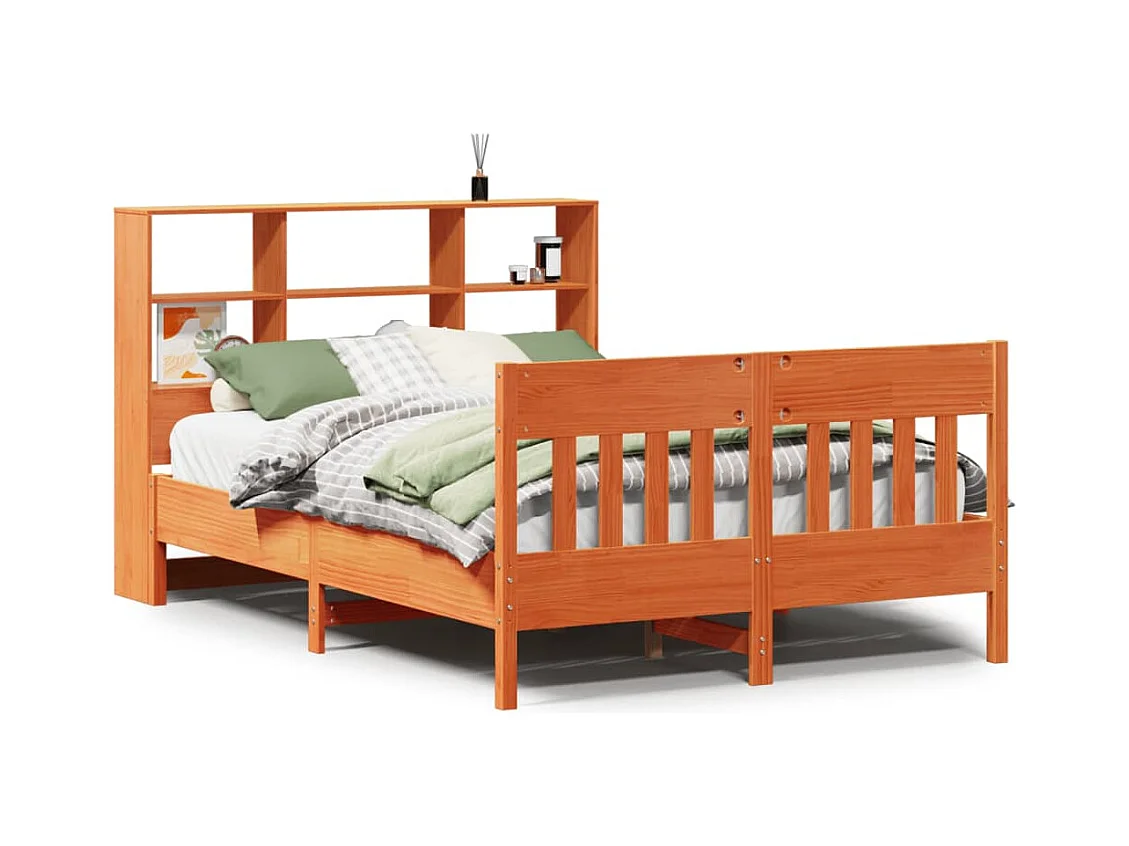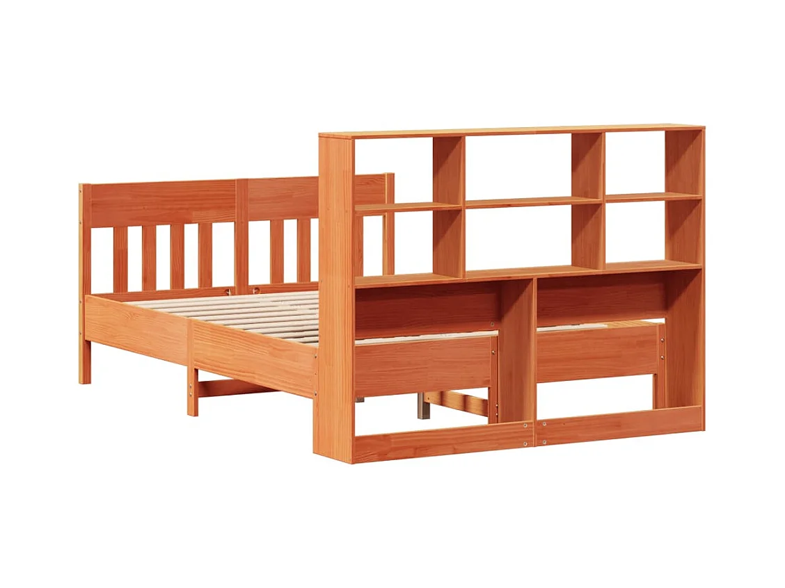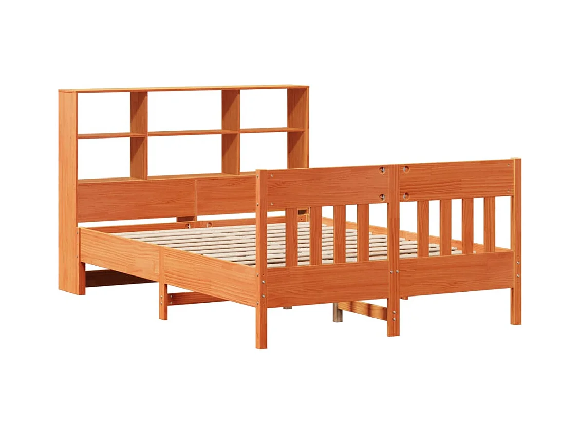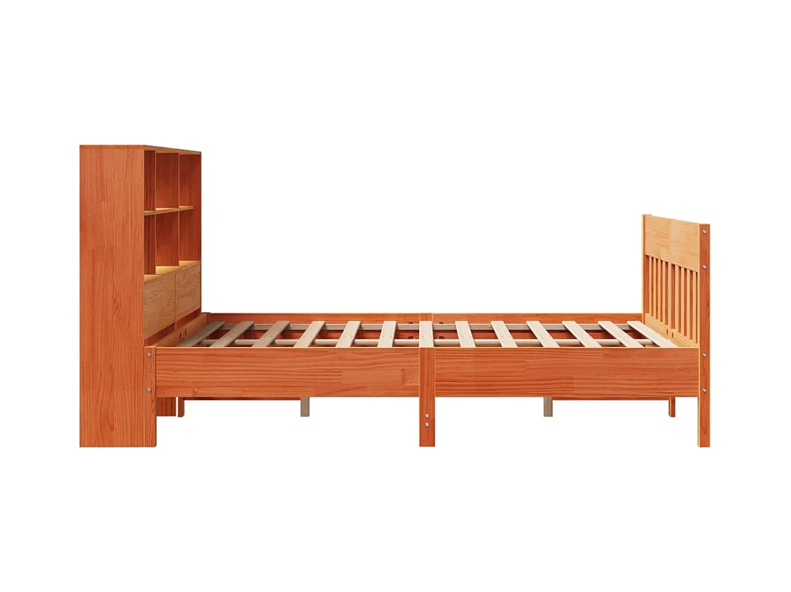 Lit bibliothèque sans matelas cire marron 140x200 cm pin massif