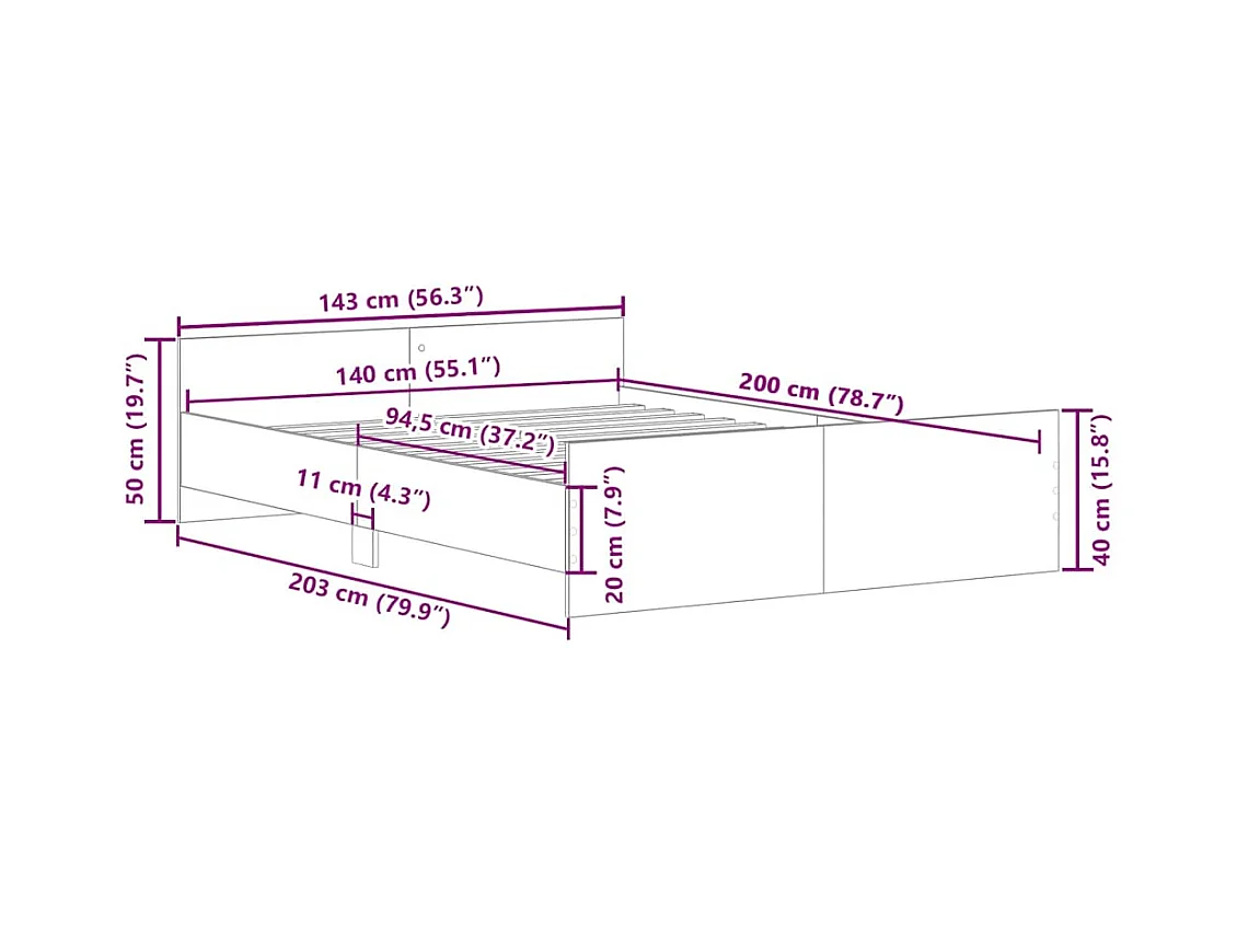Cadre de lit sans matelas 140x200 cm chêne sonoma