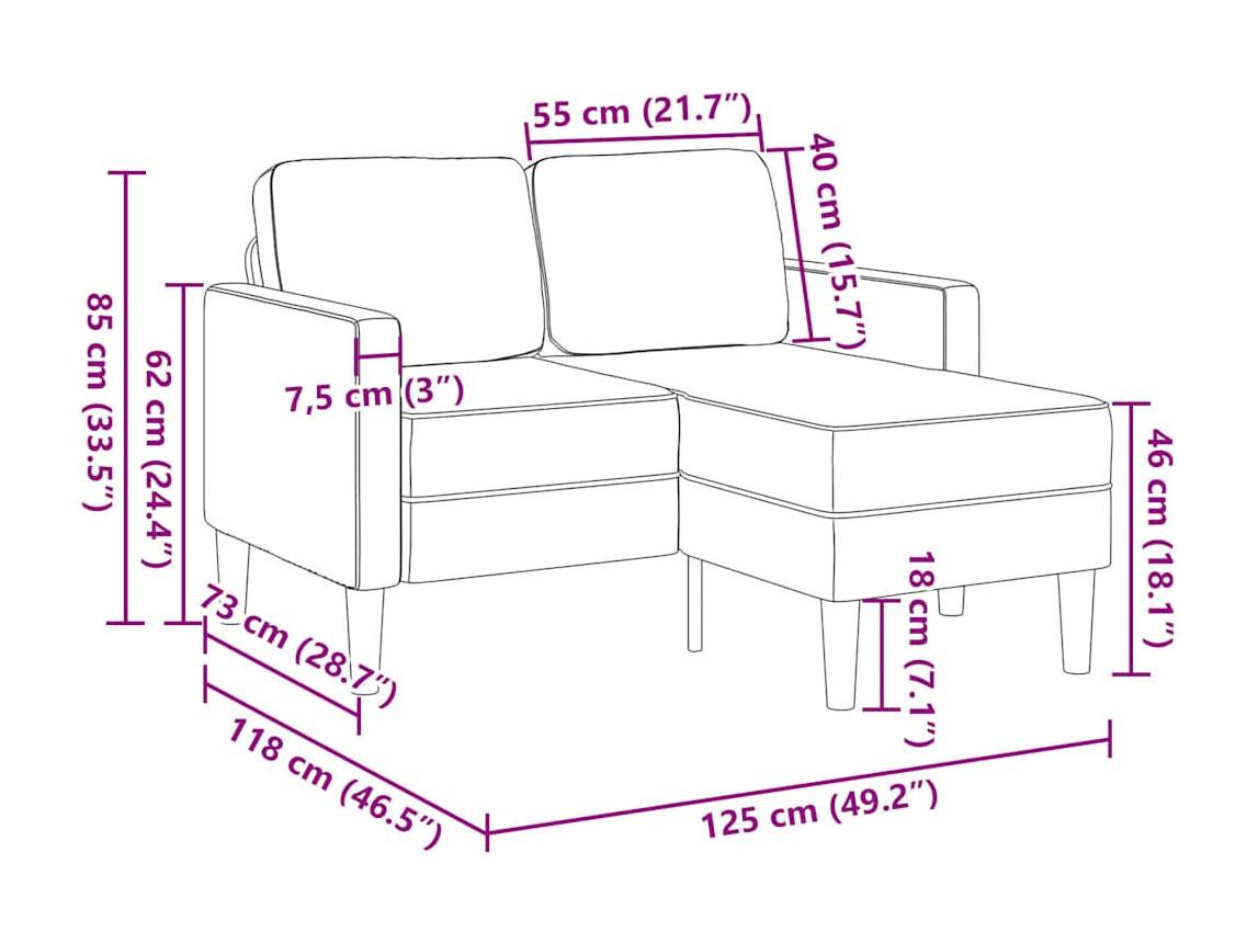 Canapé 2 places avec méridienne en L vert foncé 125 cm lin