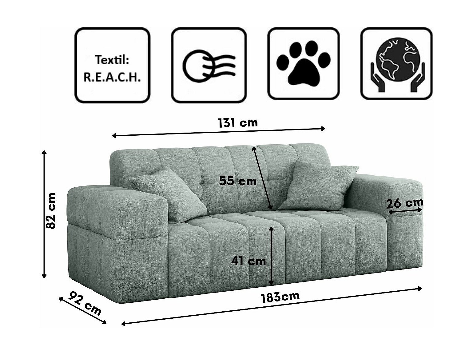 Canapé 2 places série NIMES tissu élégant Perfect Harmony Mintz