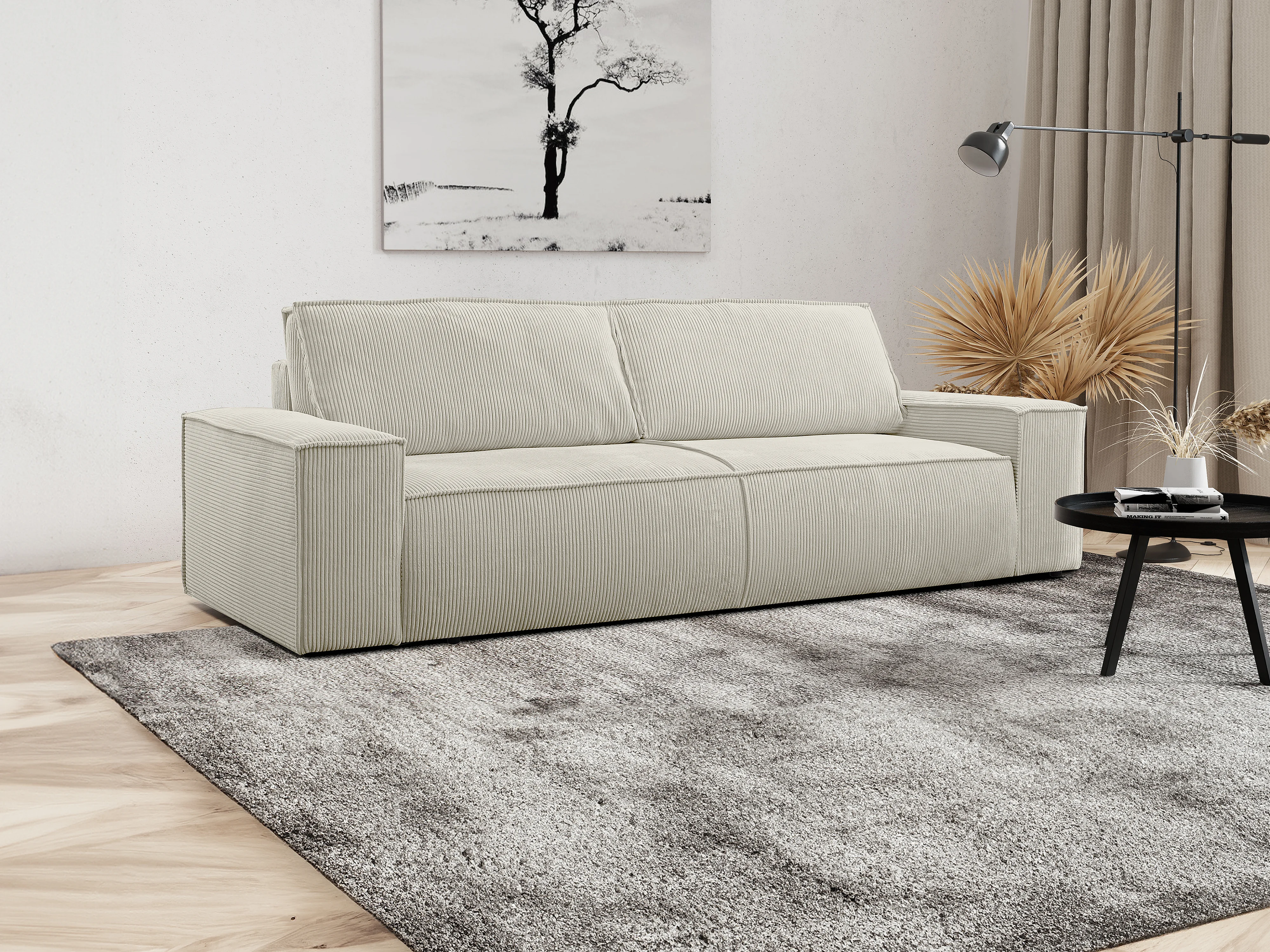 Canapé 4 places convertible en velours côtelé beige AMELIA