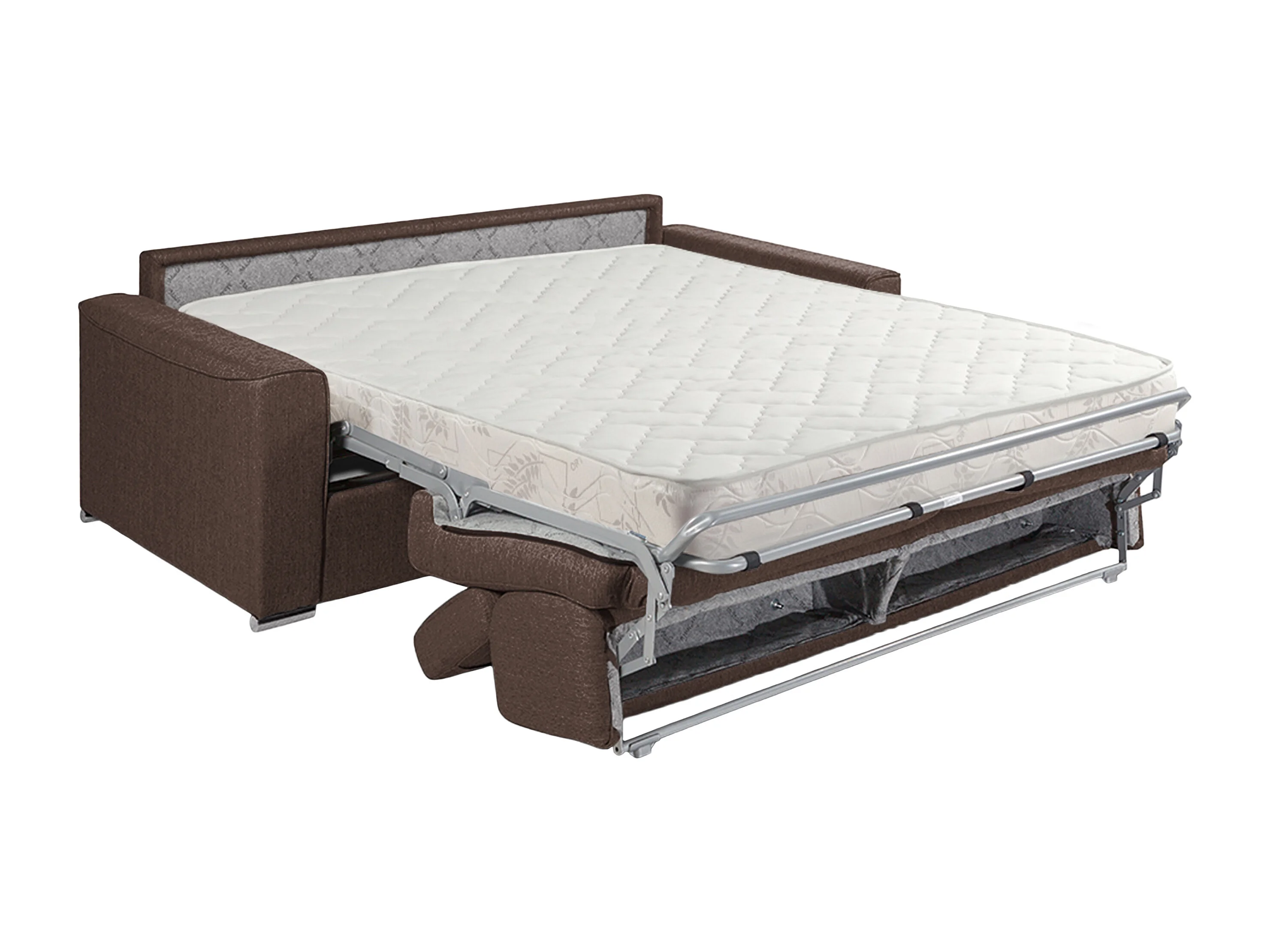 Canapé 3 places convertible express en tissu marron - couchage lattes larges 140 cm - Matelas 16 cm avec mémoire de forme VIZIR