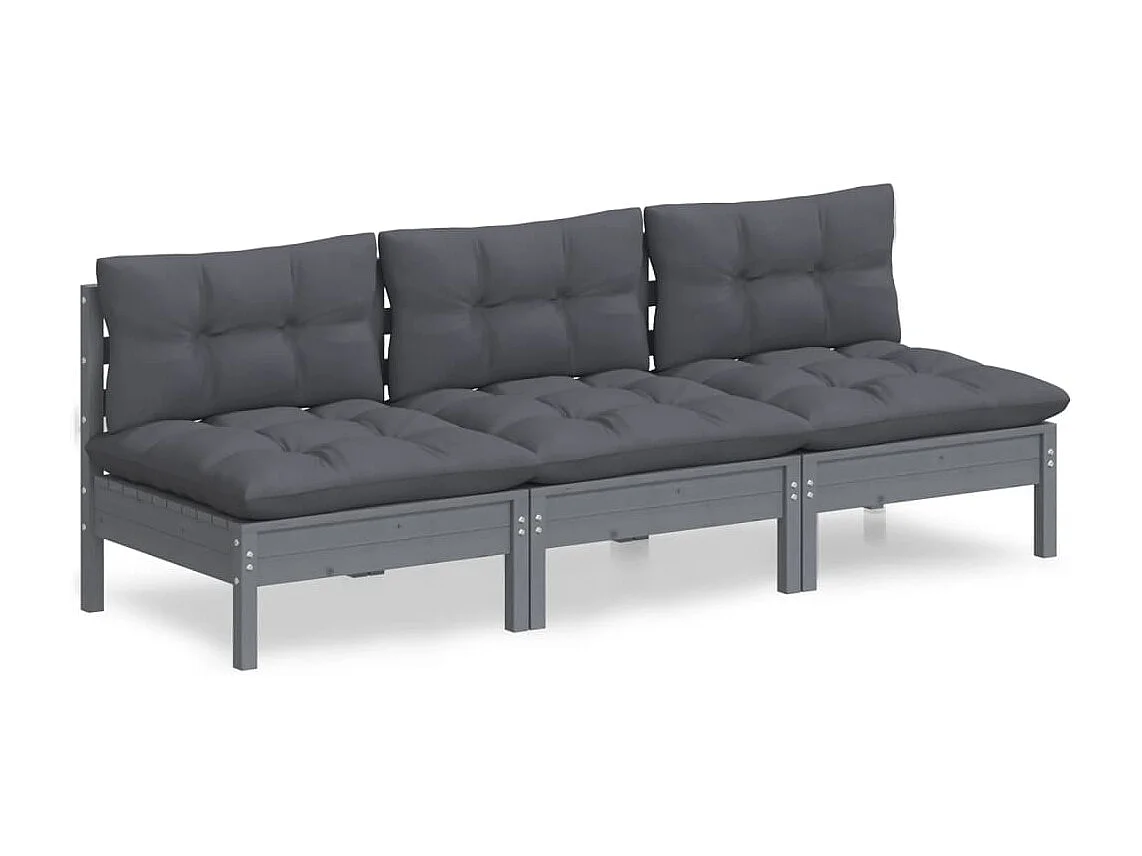 Canapé 3 places de jardin avec coussins anthracite Bois de pin