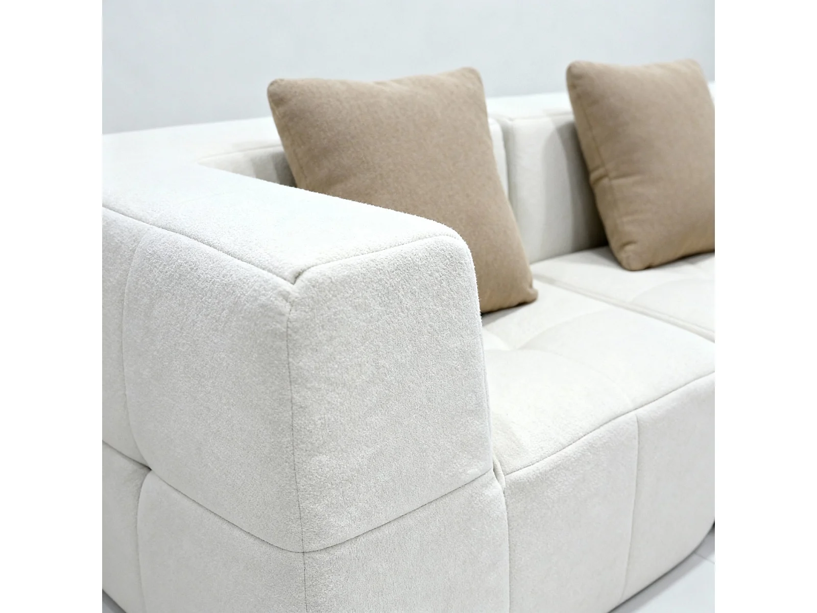 Canapé 3 places Eden Simple en flannelle - Blanc et beige