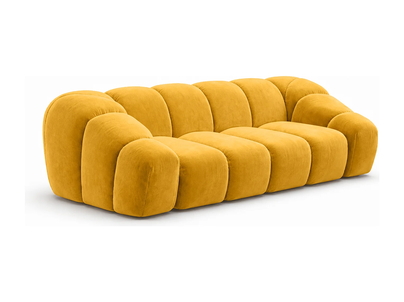 Canapé 3 places modulaire, tissu velours Bluvel, doré, CROISSANT