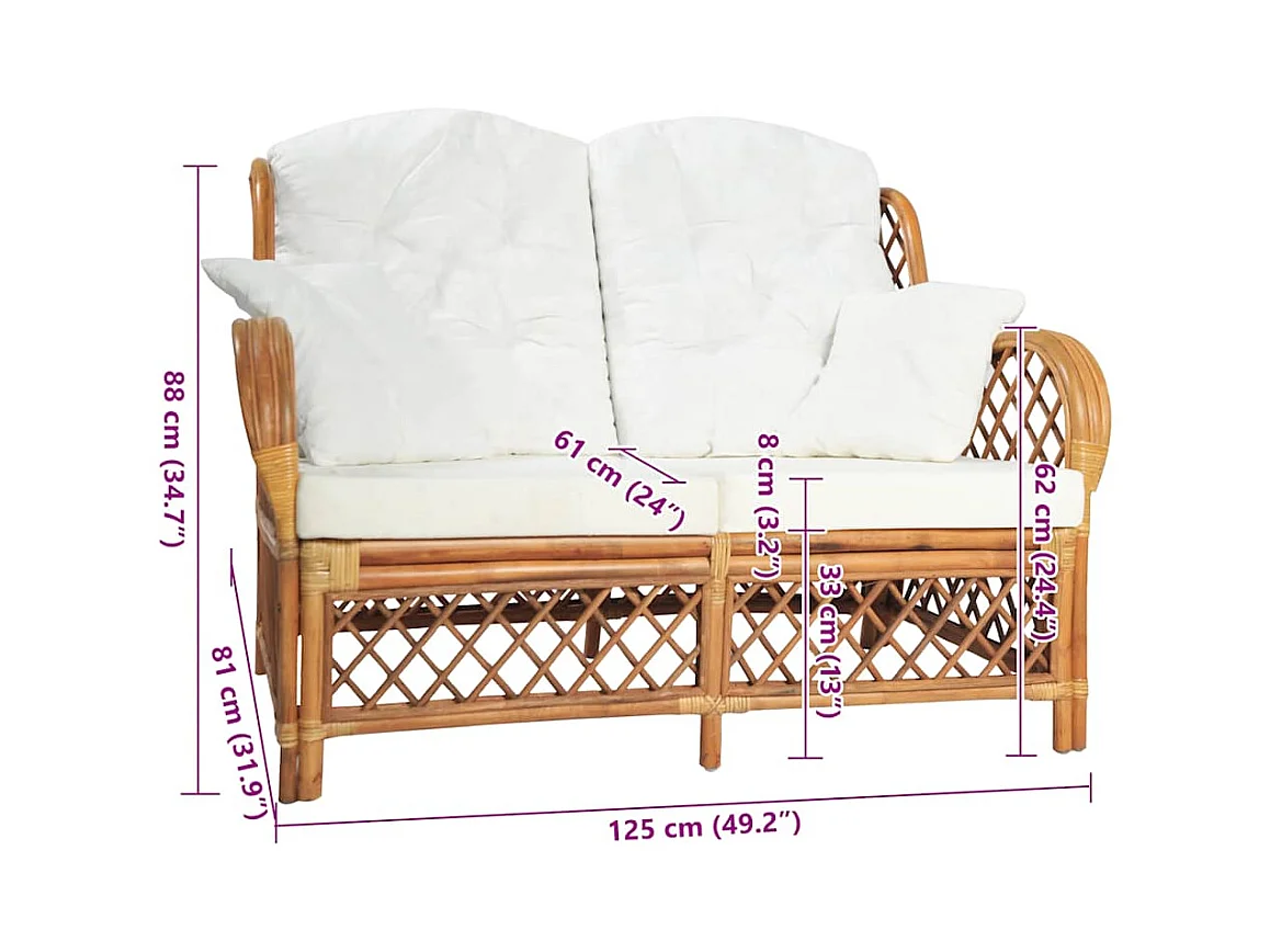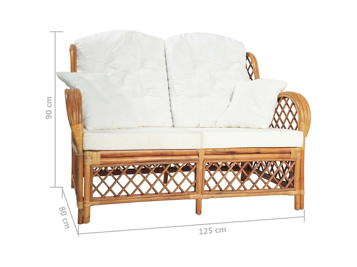 Ensemble de canapé 2 places 7 pièces Rotin véritable
