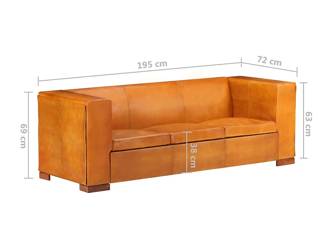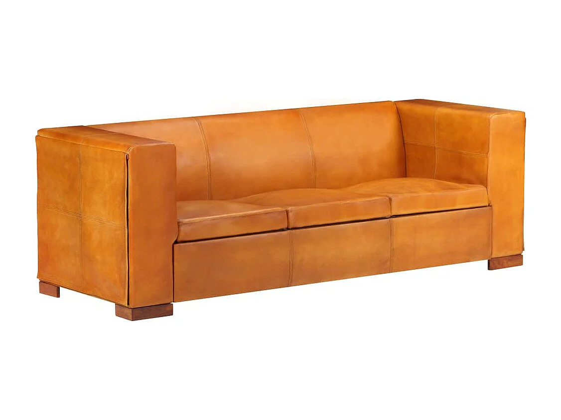 Canapé à 3 places Brun roux Cuir véritable