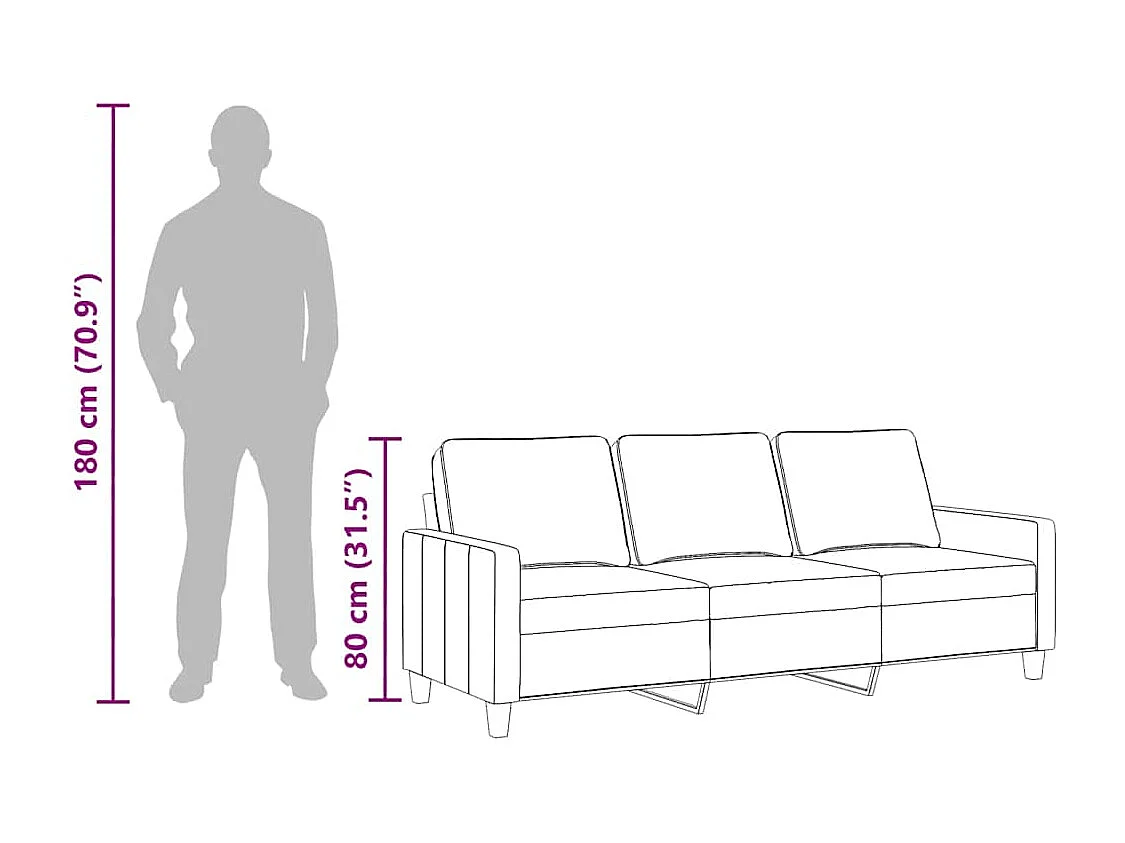 Canapé à 3 places Rouge bordeaux 180 cm Tissu