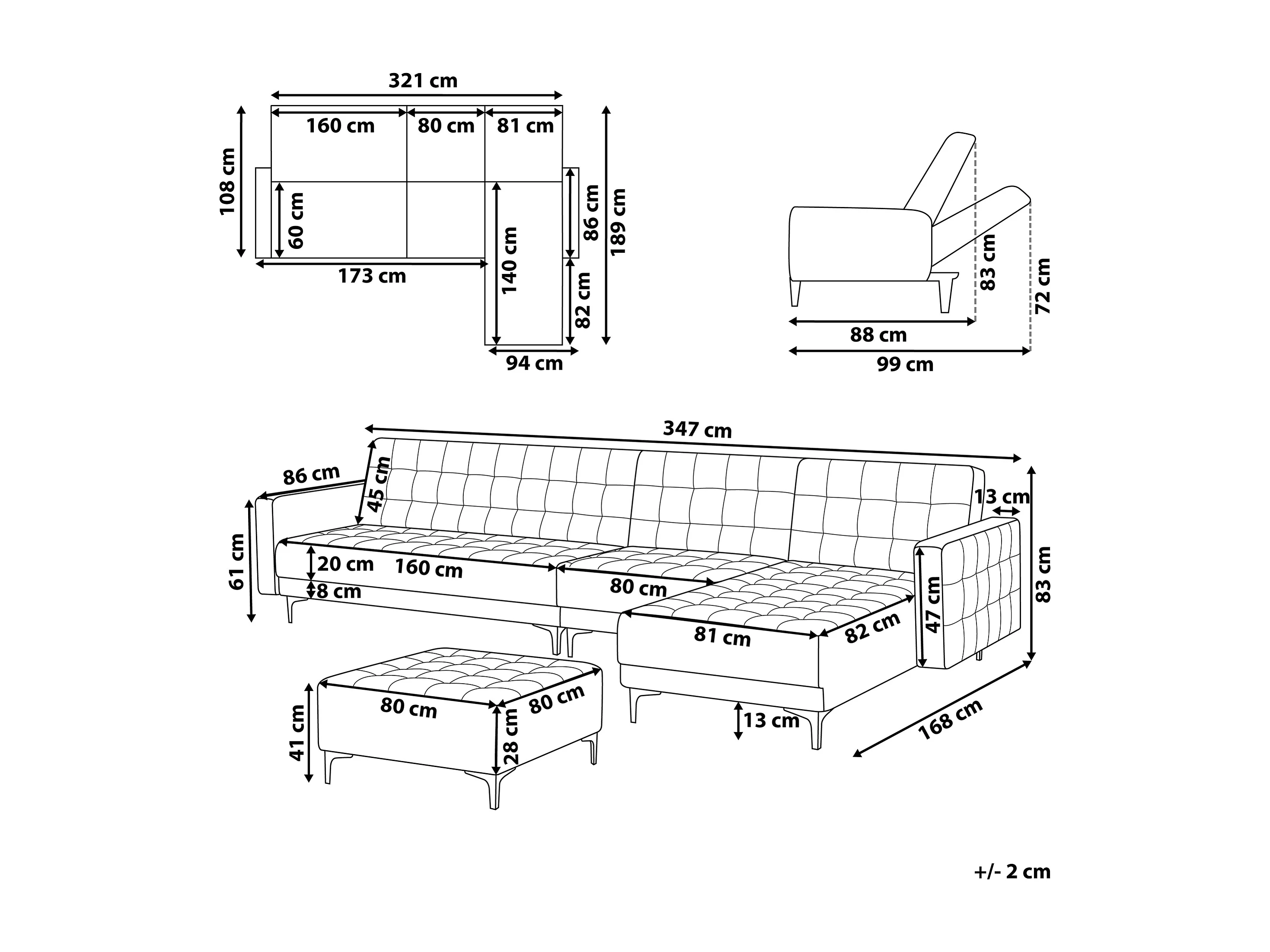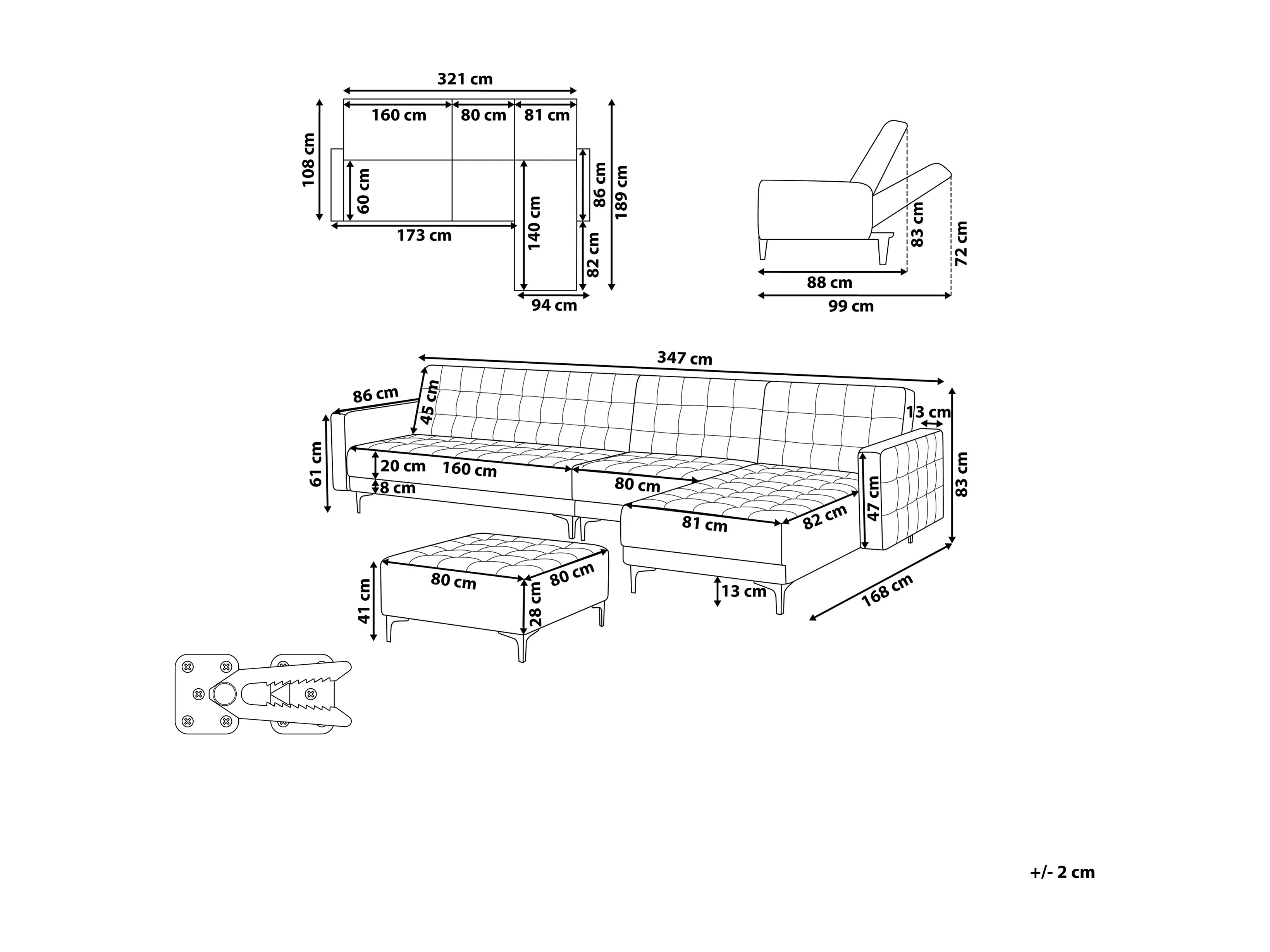 Canapé-lit d'angle modulable 5 places ABERDEEN Cuir PU Noir avec ottoman Côté droite