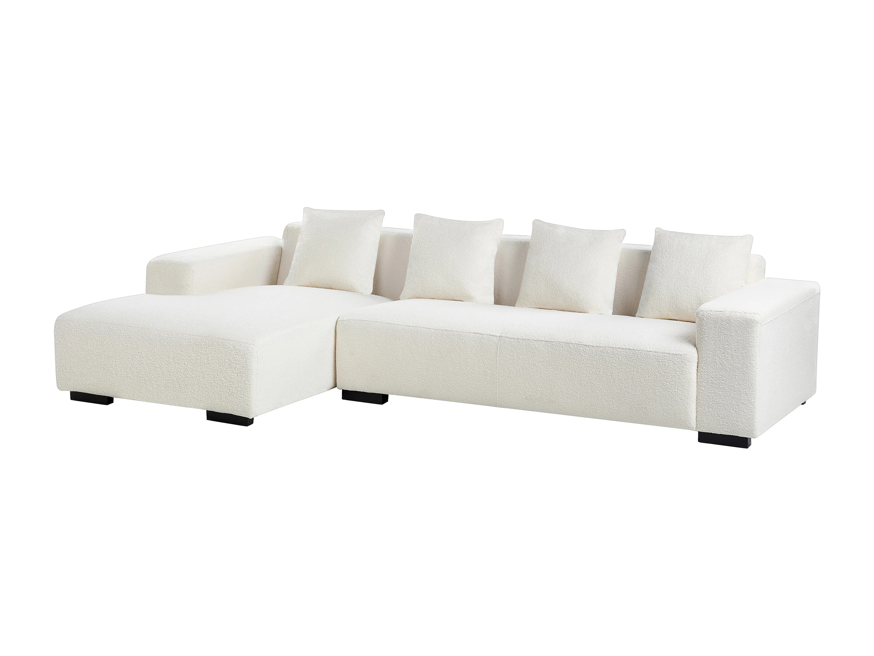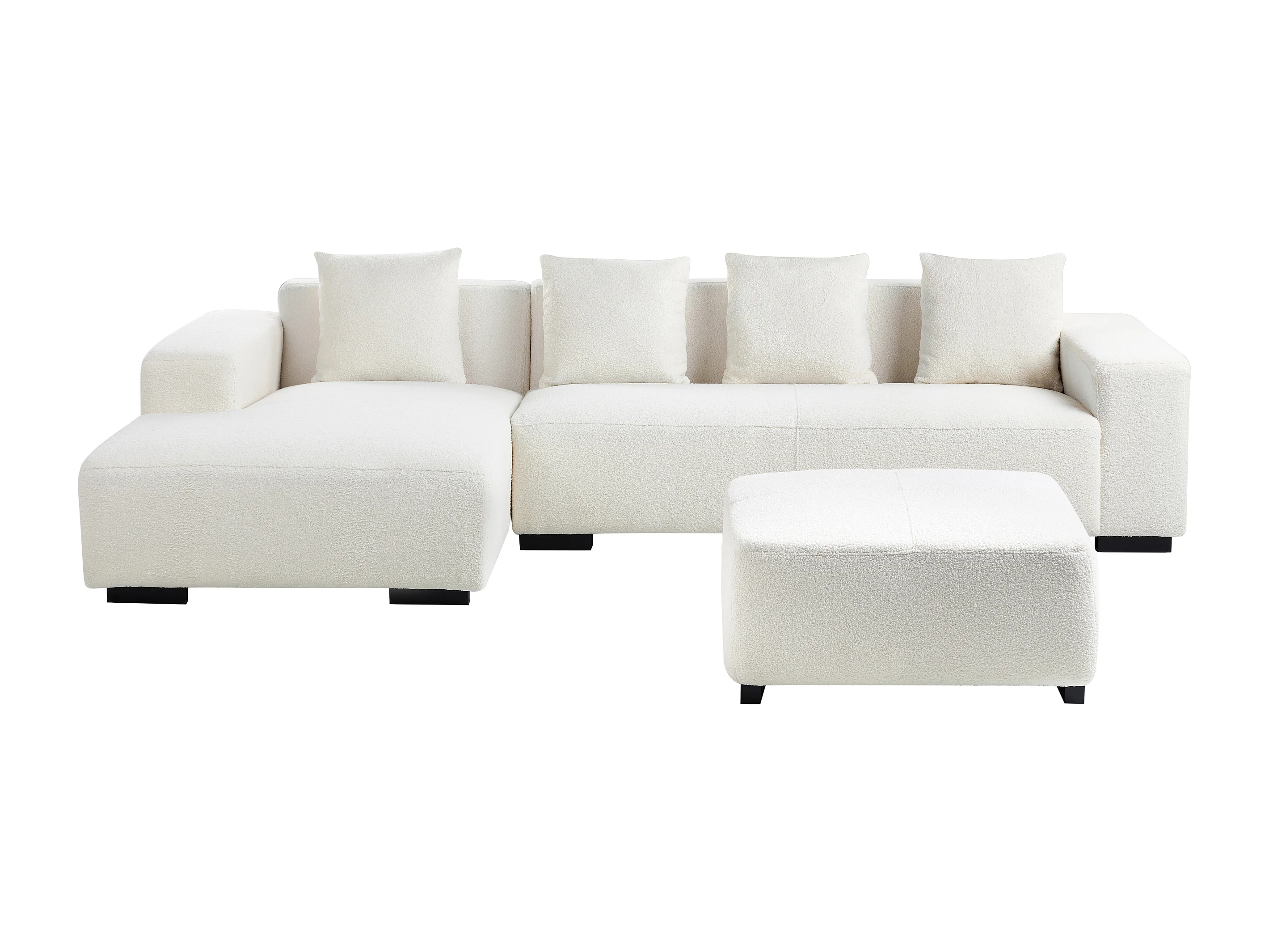 Canapé Angle Moderne à Droite 4 Places avec Ottoman Forme de L Coussins Supplémentaires Bouclé Blanc Lungo