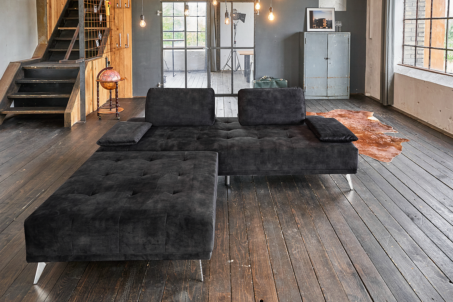 Chaise de relaxation avec repose-pied Gris foncé Velours